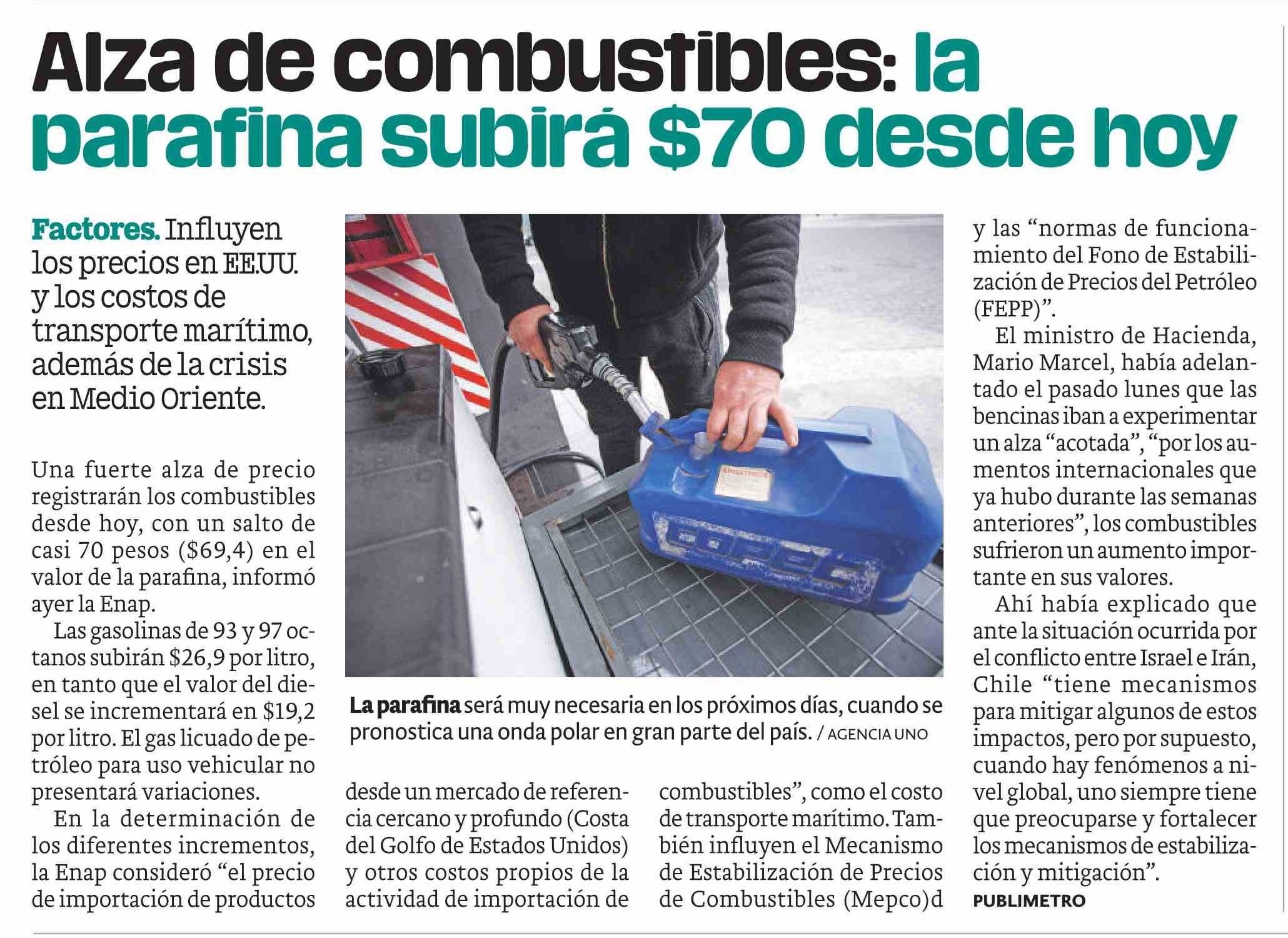 Alza de combustibles: la parafina subira $70 desde hoy 26-06-2025 Publimetro |