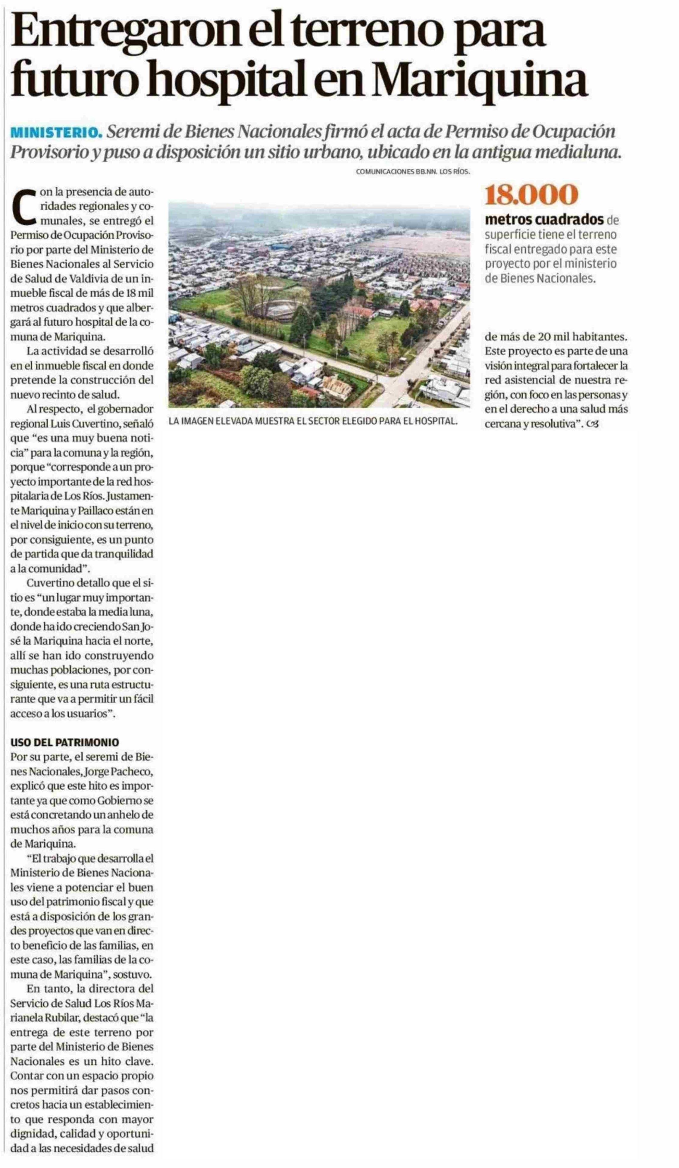 Entregaron el terreno para futuro hospital en Mariquina 30-05-2025 Diario Austral Región de Los Ríos |