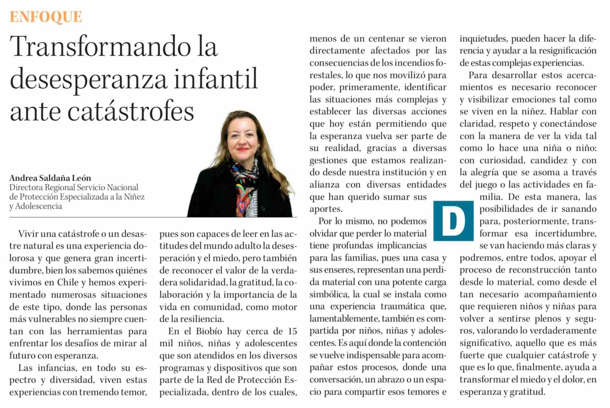 Columnas de Opinión: Transformando la desesperanza infantil ante catástrofes 12-02-2026 Diario Concepción |