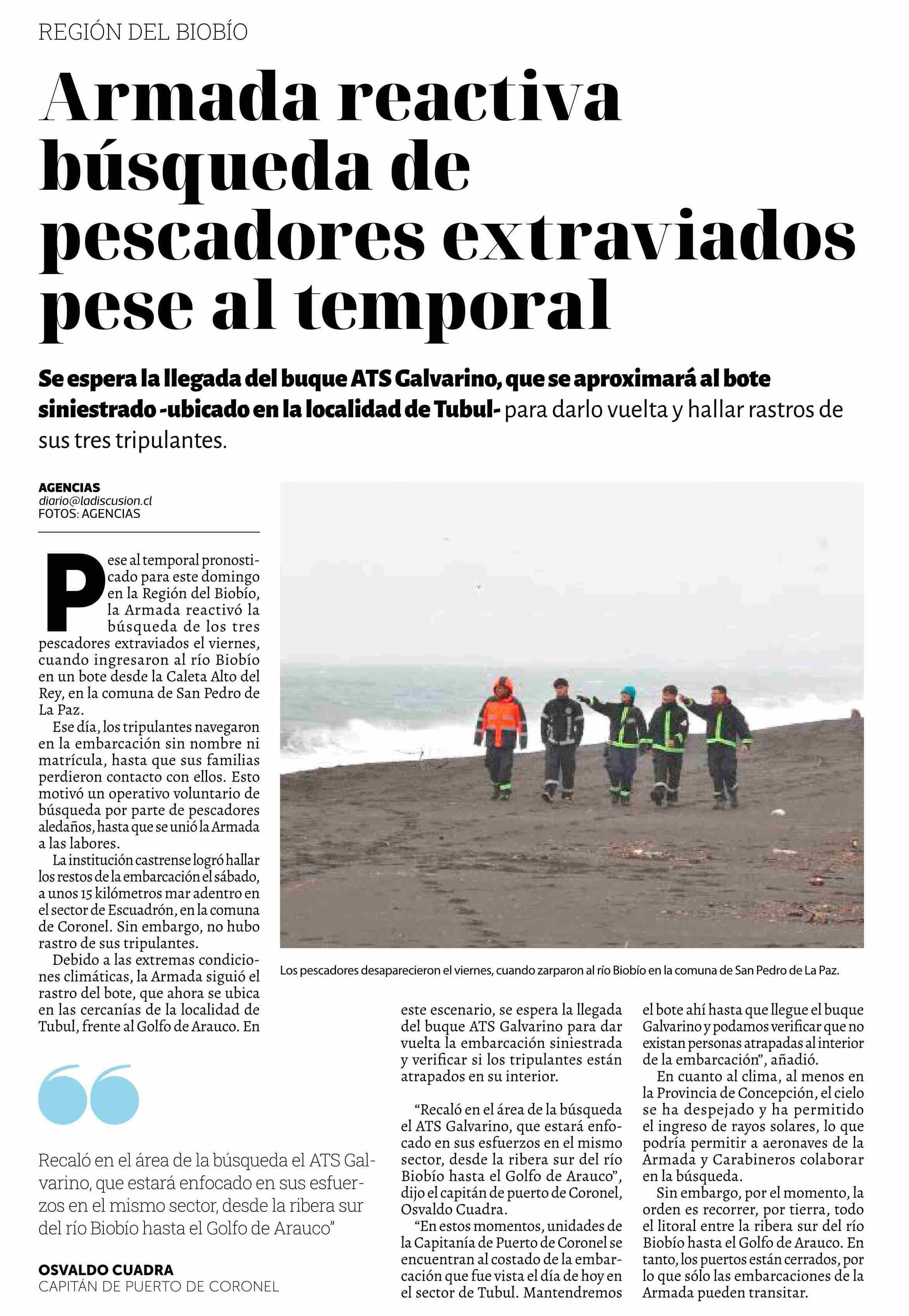 Armada reactiva búsqueda de pescadores extraviados pese al temporal 16-06-2025 La Discusión |