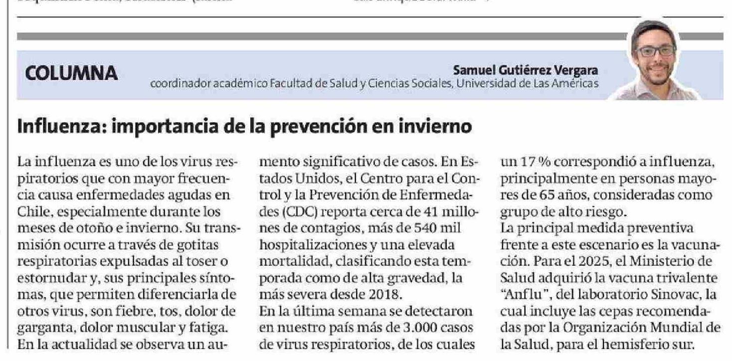 Columnas de Opinión: Influenza: importancia de la prevención en i 1lerno 05-06-2025 La Estrella de Antofagasta |
