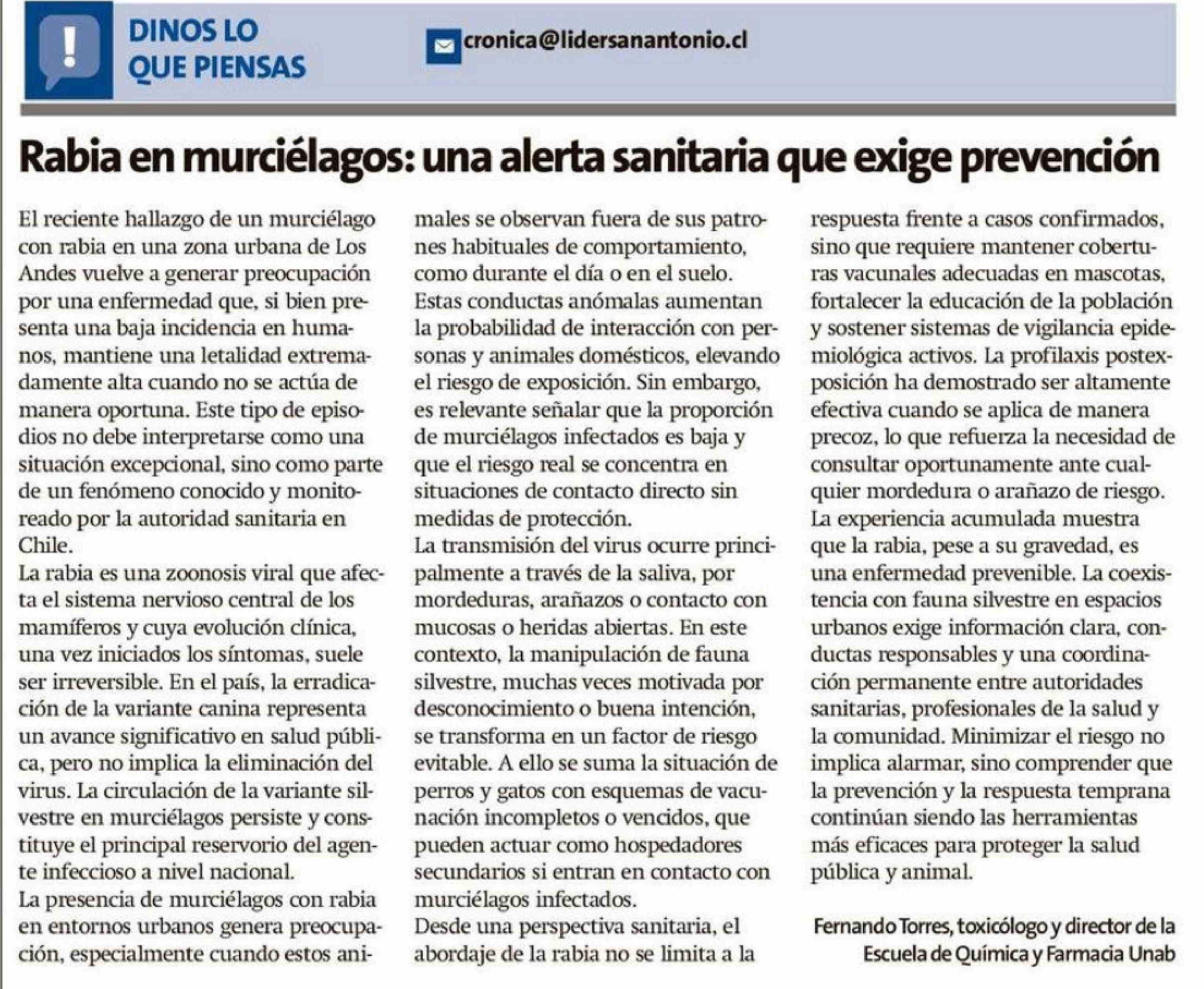 Cartas: Rabia en murciélagos: una alerta sanitaria que exige prevención