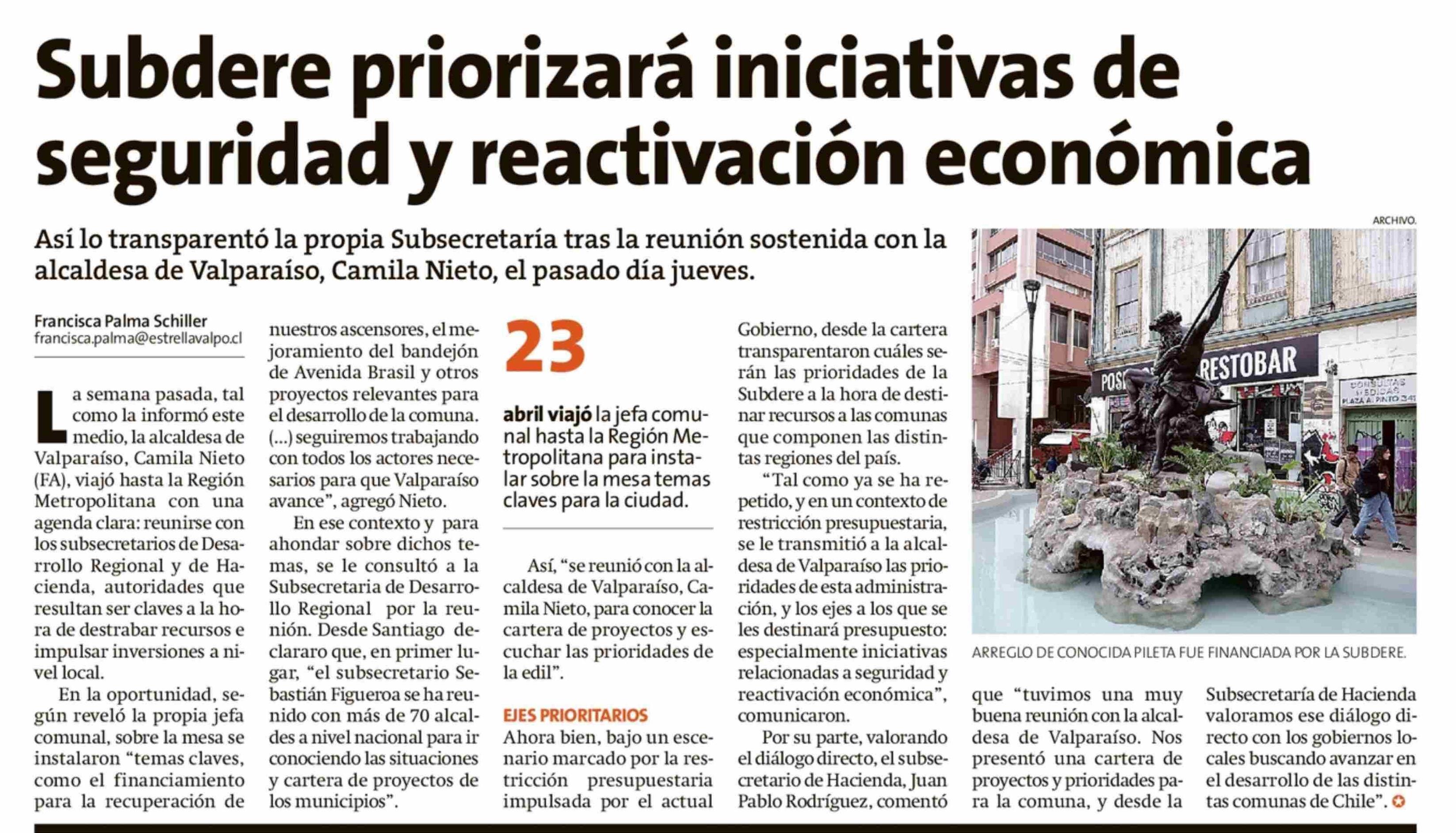 Subdere priorizará iniciativas de seguridad y reactivación económica 27-04-2026 La Estrella de Valparaíso |