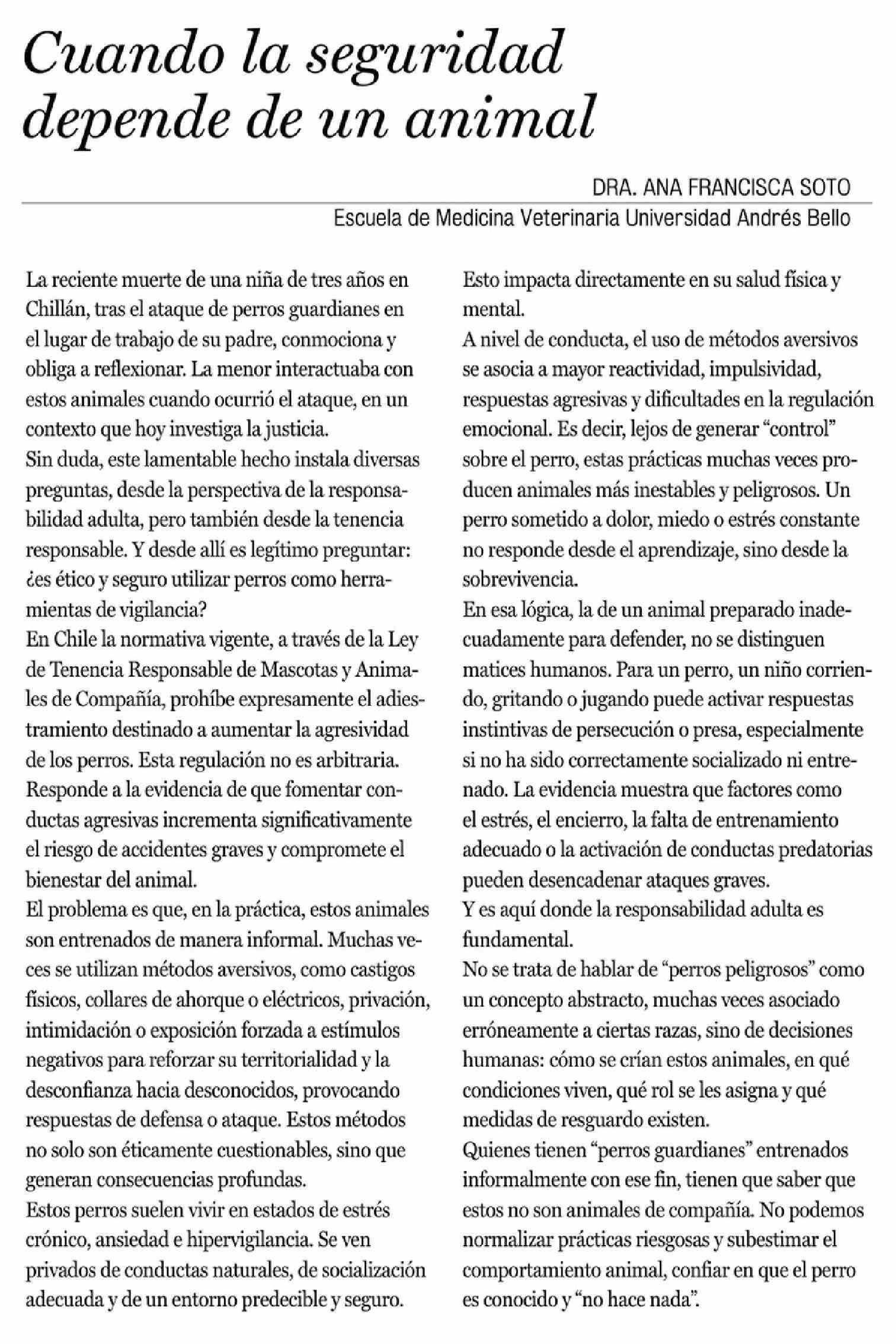 Cartas: Cuando la seguridad depende de un animal 17-04-2026 La Prensa de Curicó |