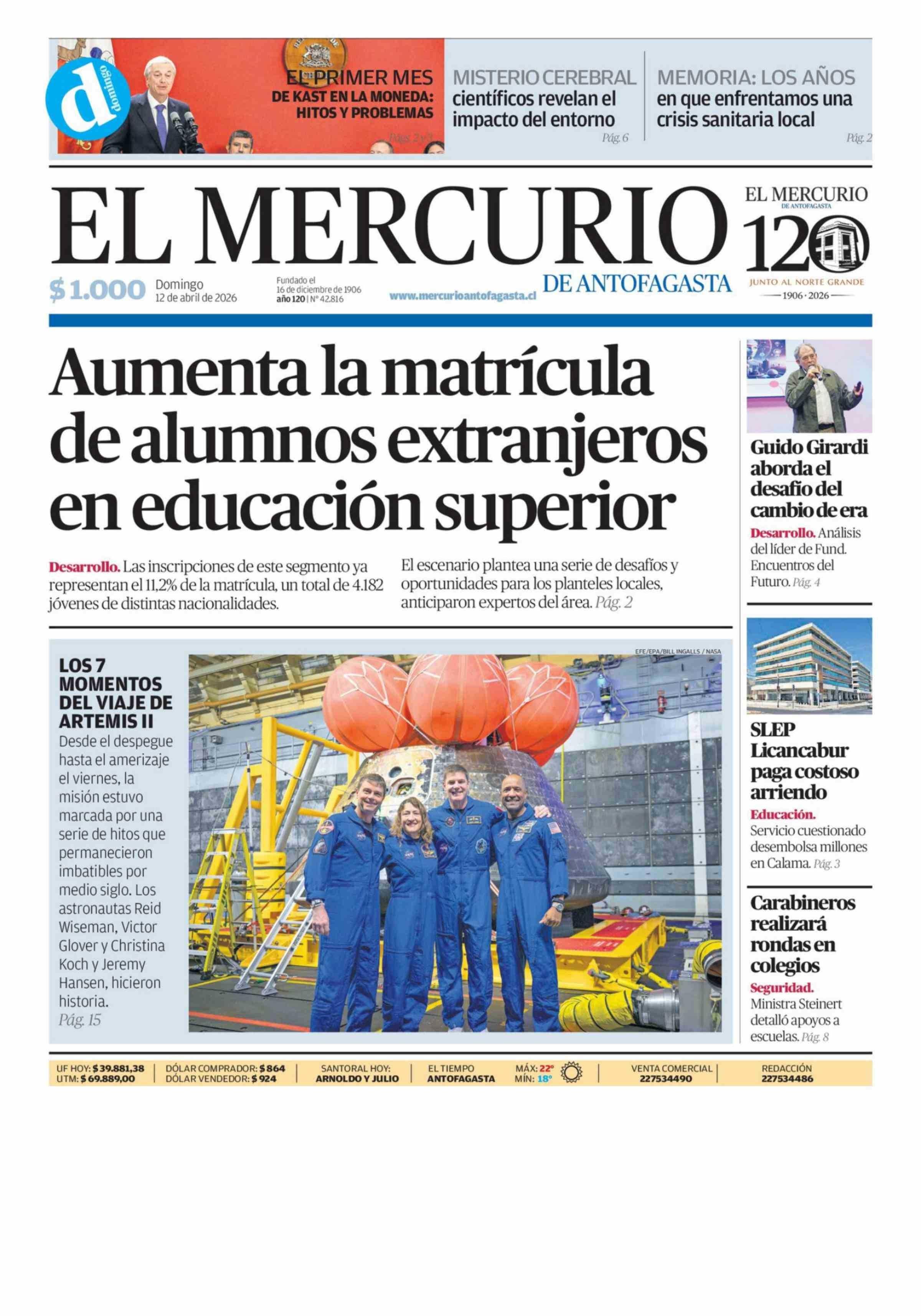 Fecha: 12-04-2026 Sector: Portada Región: Región de Antofagasta