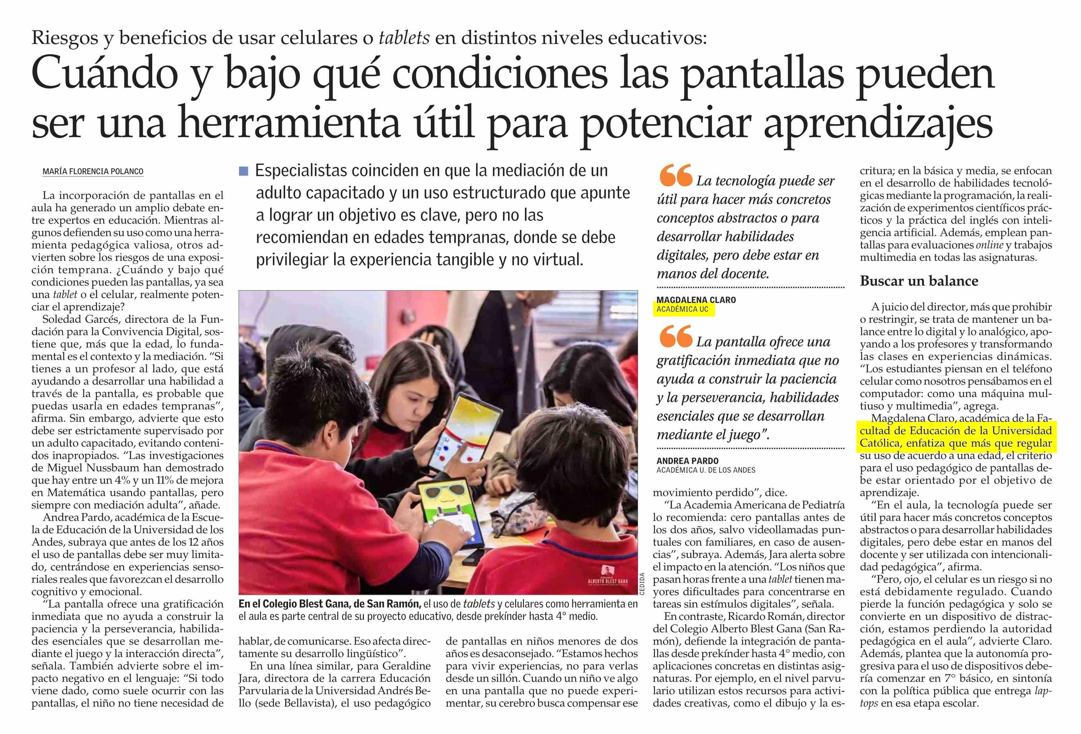 Cuándo y bajo qué condiciones las pantallas pueden ser una herramienta útil para potenciar aprendizajes 18-05-2025 El Mercurio |
