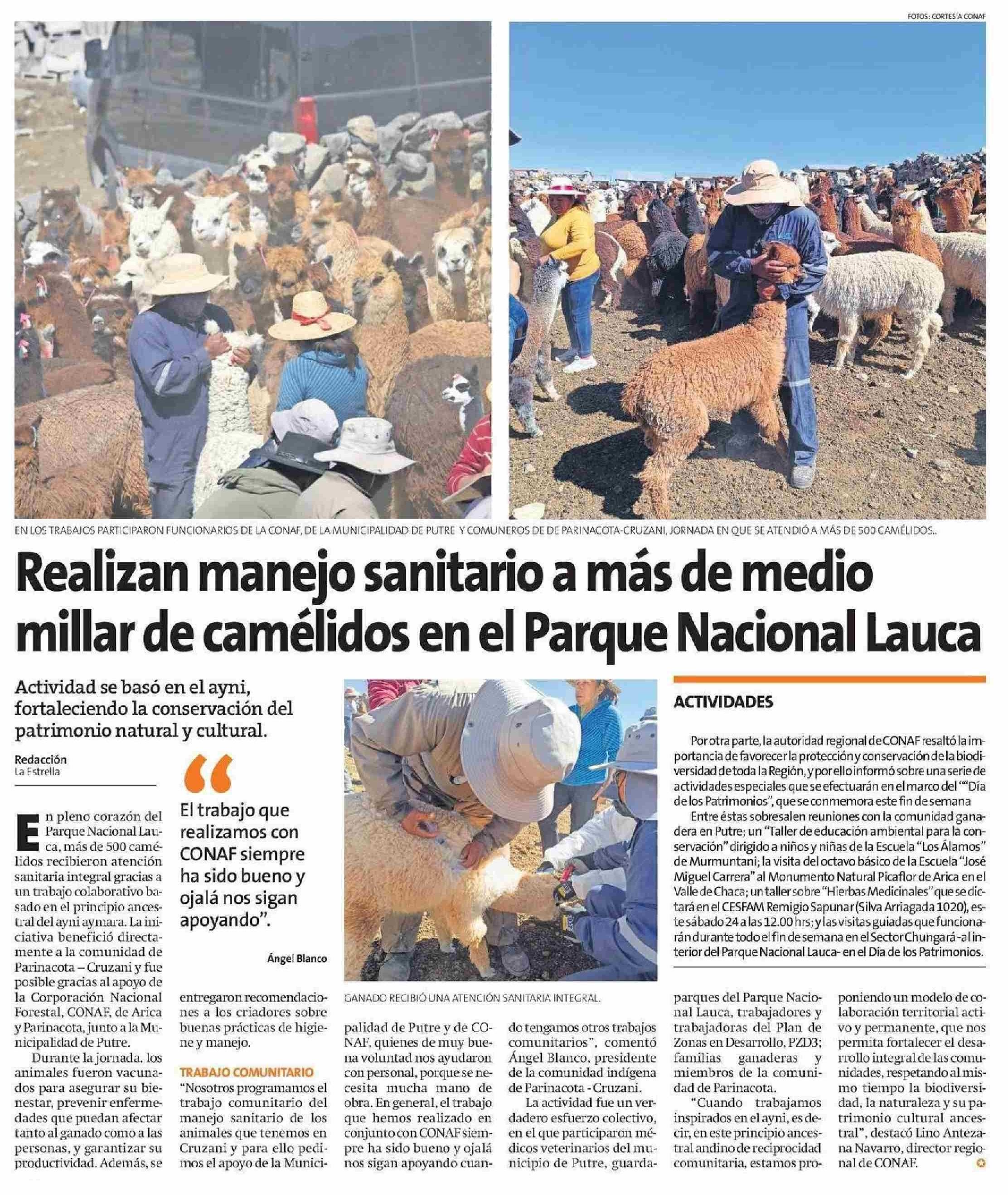Realizan manejo sanitario a más de medio millar de camélidos en el Parque Nacional Lauca 23-05-2025 La Estrella de Arica |