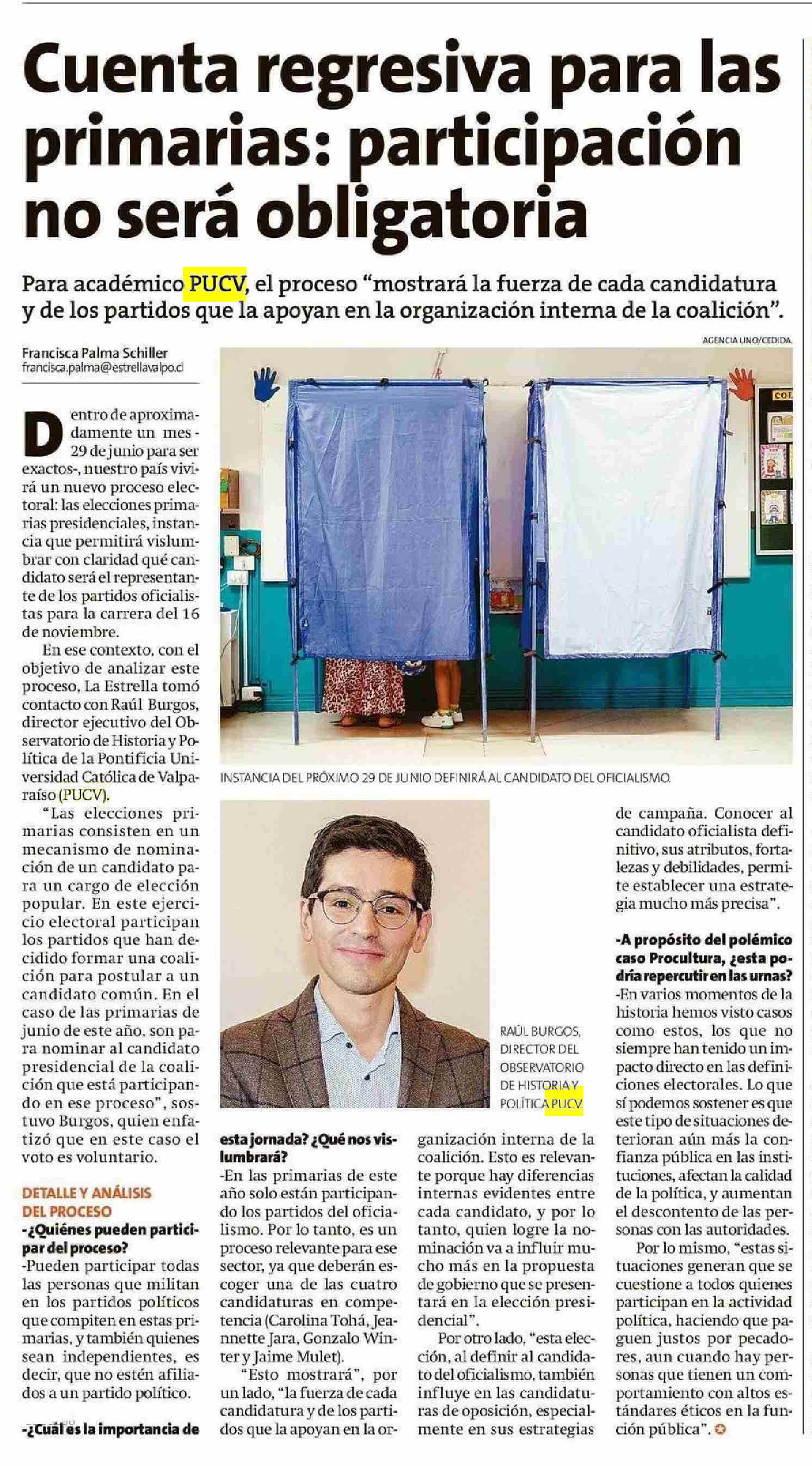 Cuenta regresiva para las primarias: participación no será obligatoria 19-05-2025 La Estrella de Valparaíso |