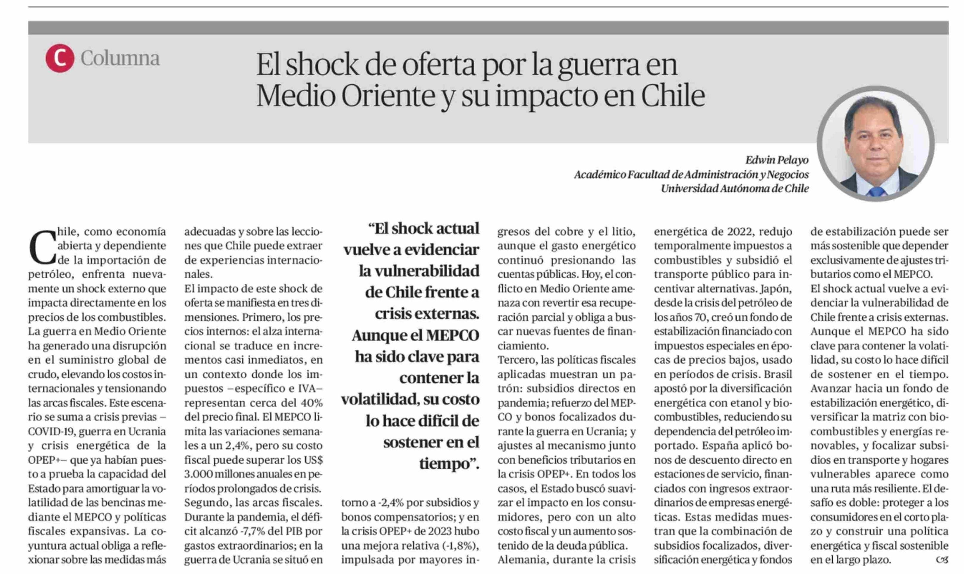 Título: COLUMNAS DE OPINIÓN: El shock de oferta por la guerra en Medio Oriente y su impacto en Chile