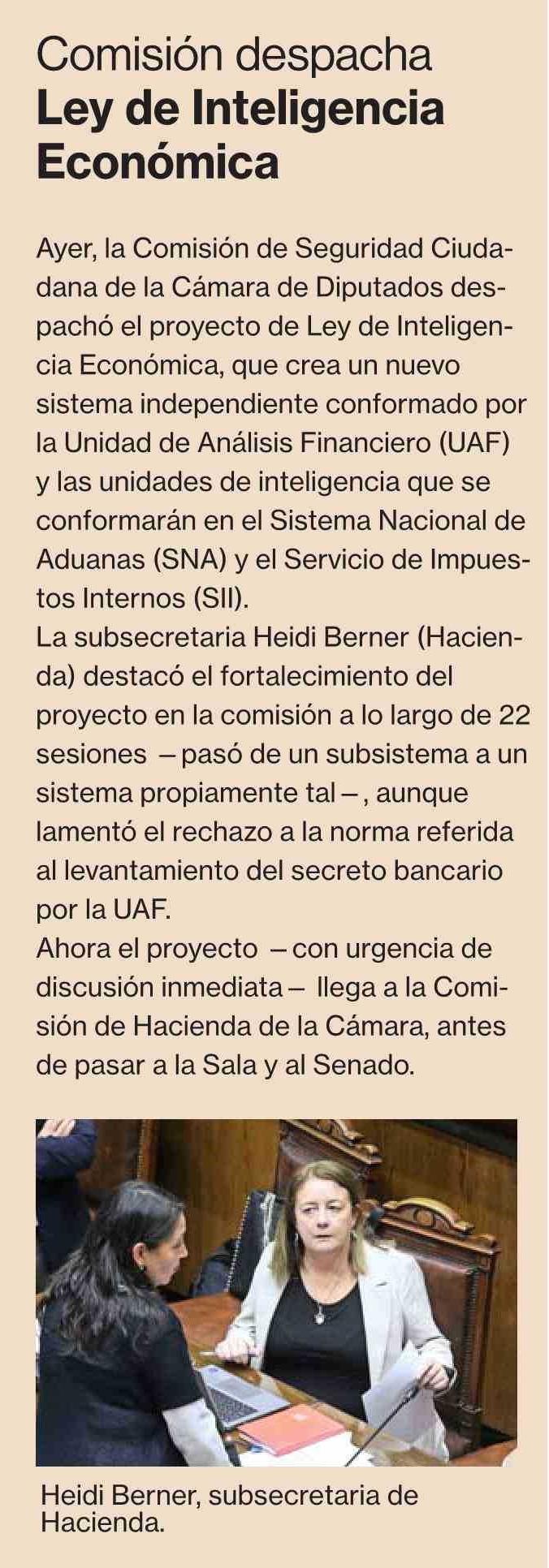 Título: Comisión despacha Ley de Inteligencia Económica