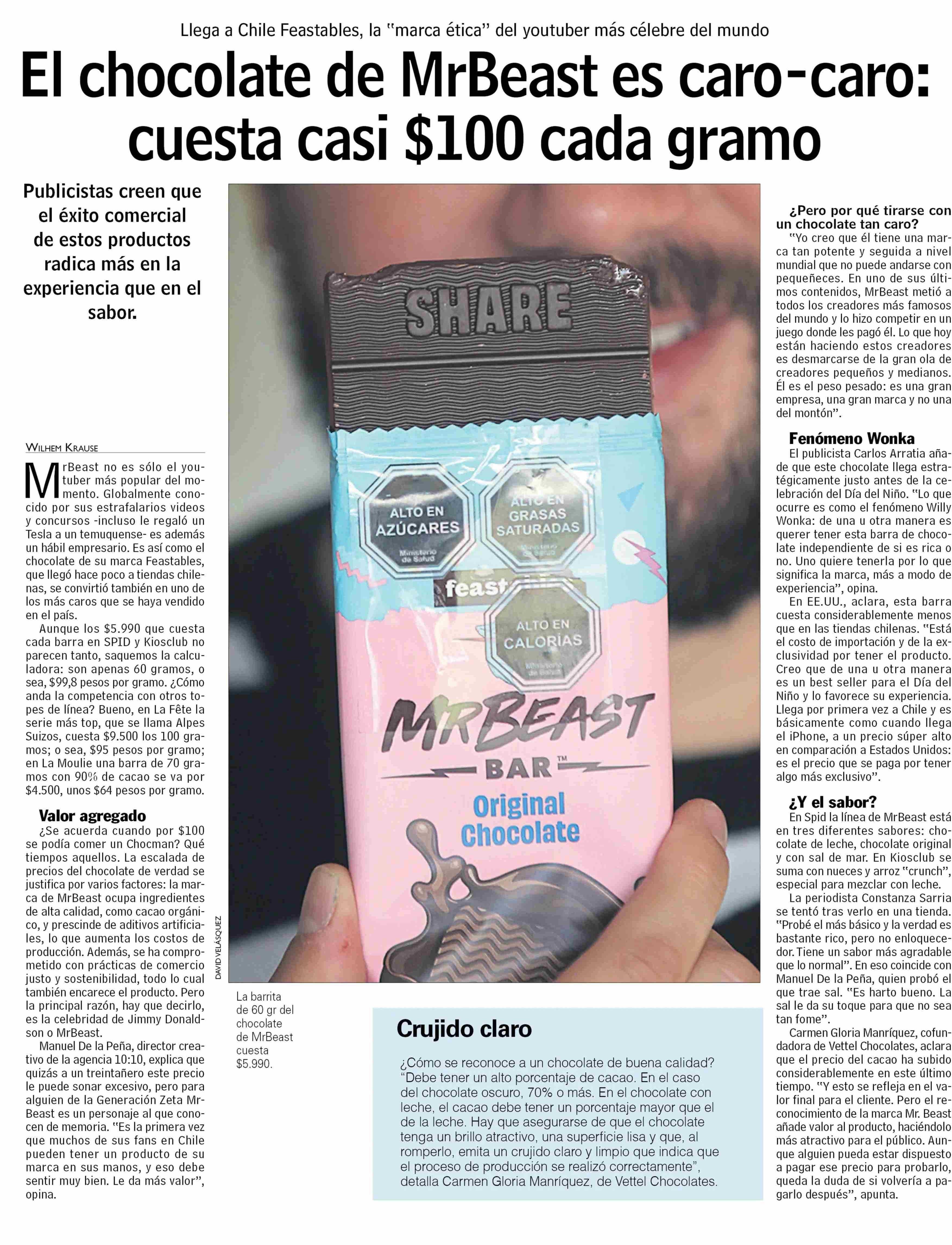 El chocolate de MrBeast es caro-caro: cuesta casi $100 cada gramo 06-08-2024 Las Últimas Noticias |