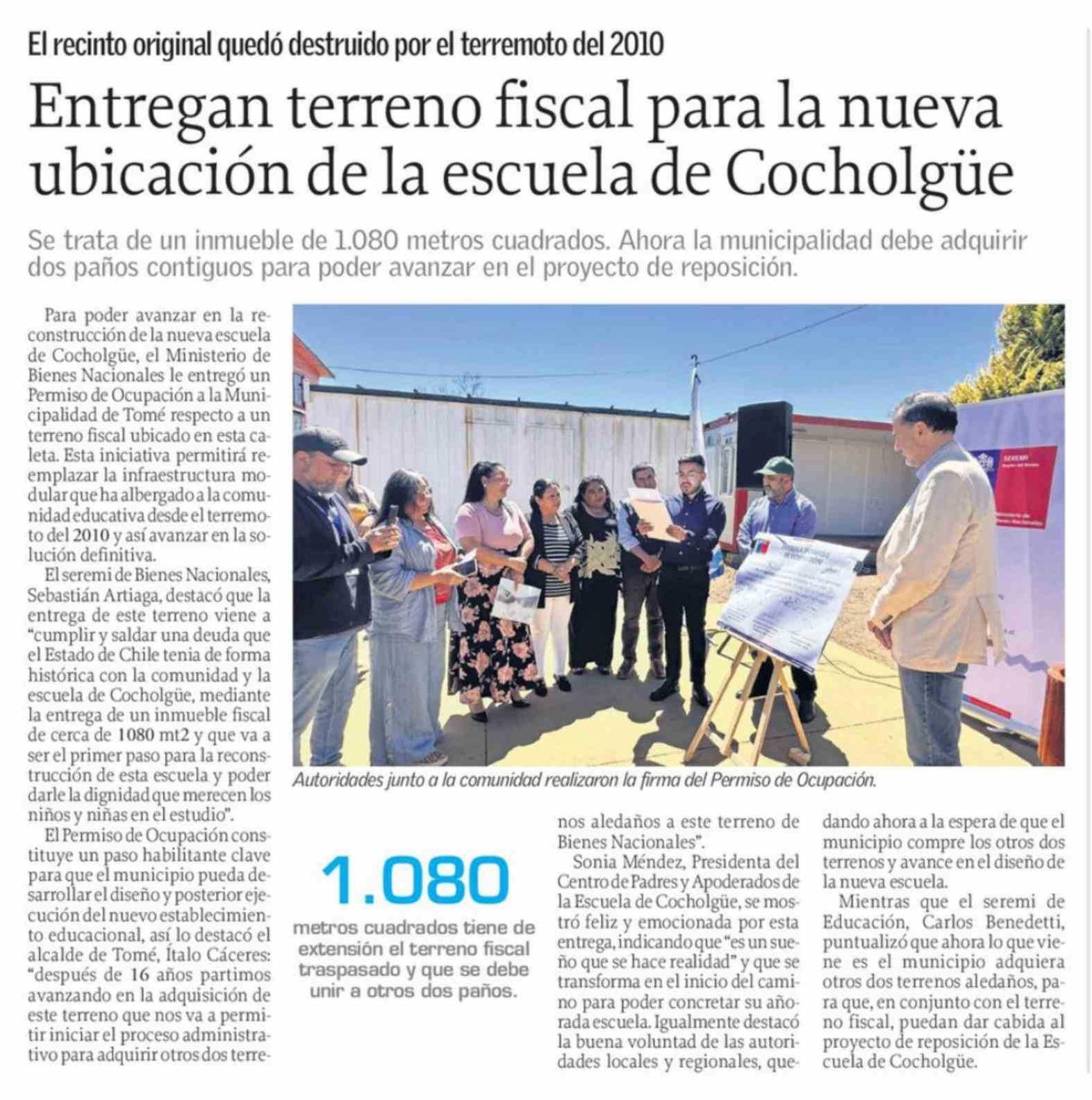Título: Entregan terreno fiscal para la nueva ubicación de la escuela de Cocholgüe