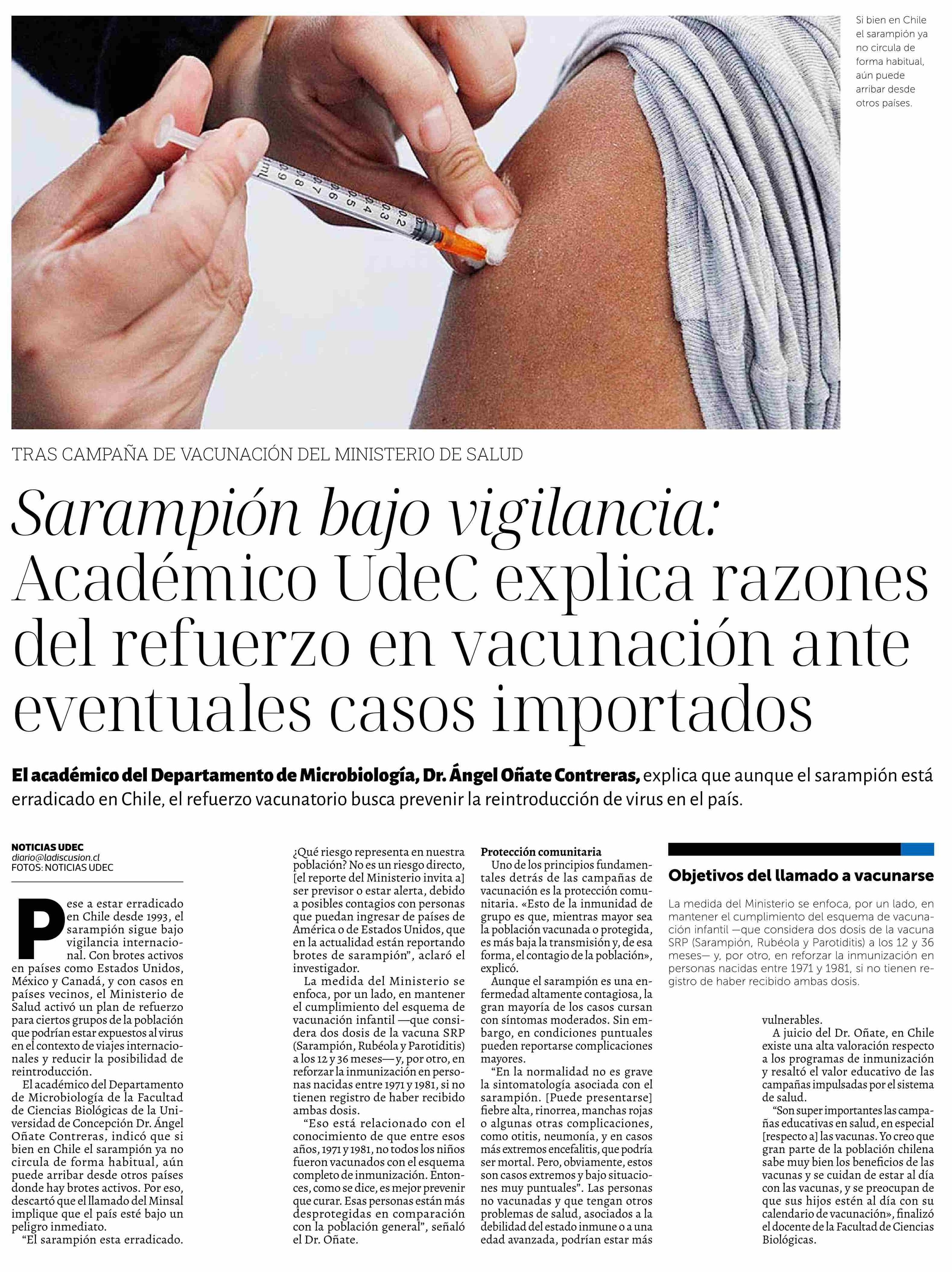Sarampión bajo vigilancia: Académico UdeC explica razones del refuerzo en vacunación ante eventuales casos importados 30-05-2025 La Discusión |