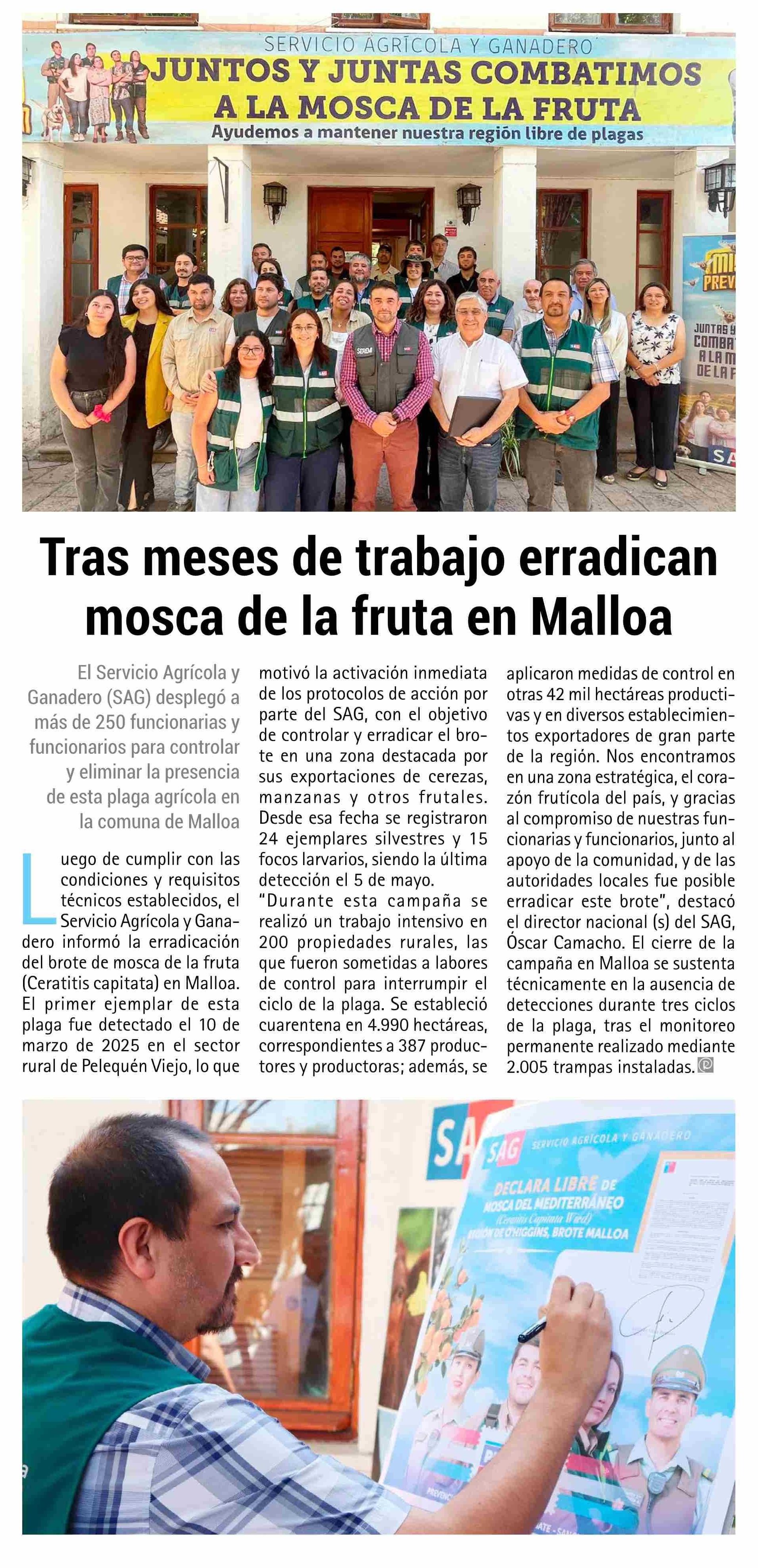 Tras meses de trabajo erradican mosca de la fruta en Malloa 20-01-2026 El Rancagüino |