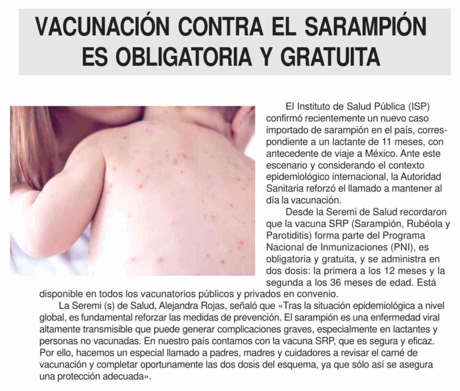 Título: VACUNACIÓN CONTRA EL SARAMPIÓN ES OBLIGATORIA Y GRATUITA