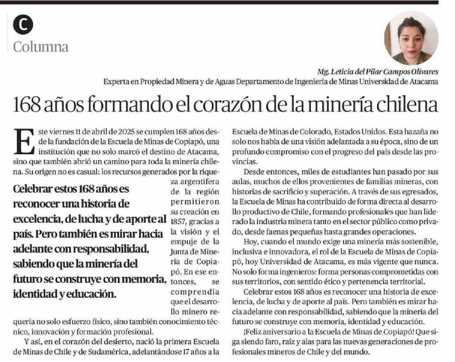 168 años formando el corazón de la minería chilena 10-04-2025 El Diario de Atacama |