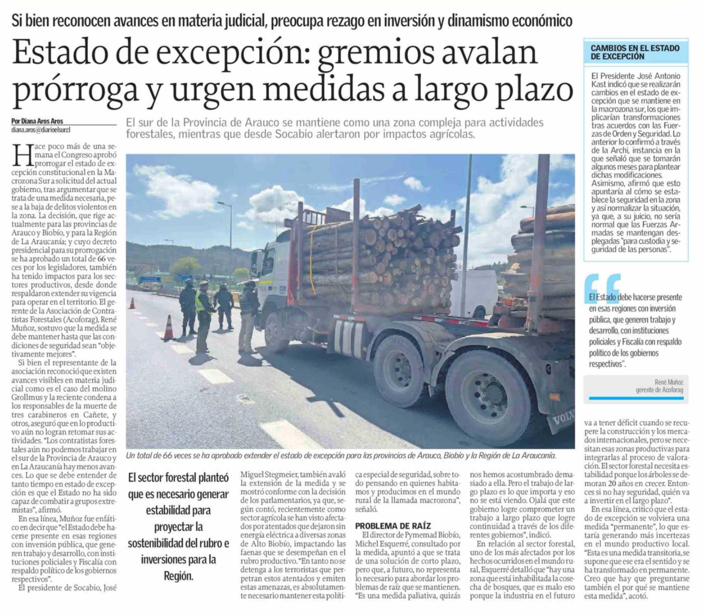 Estado de excepción: gremios avalan prórroga y urgen medidas a largo plazo 01-04-2026 El Sur |