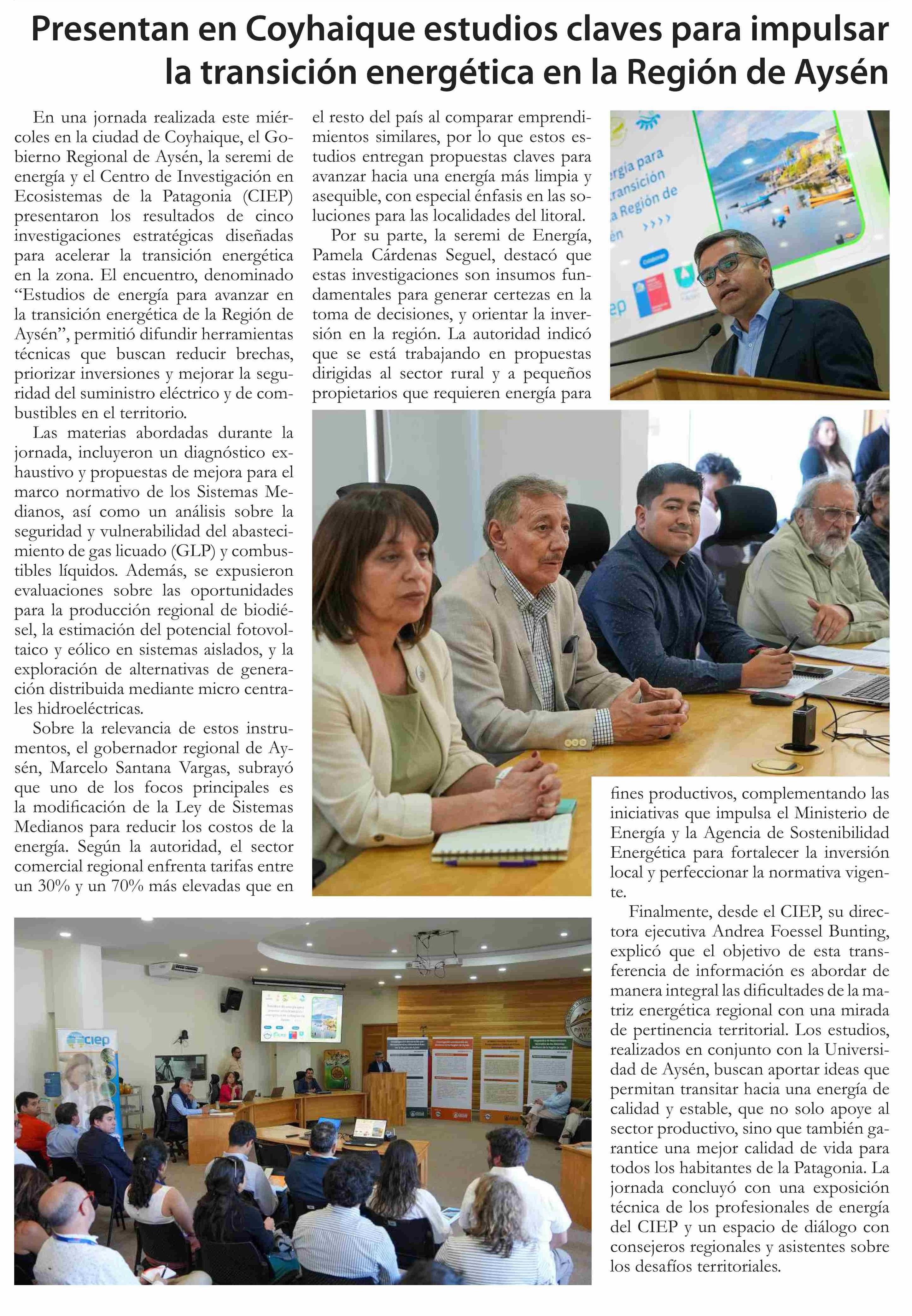 Título: Presentan en Coyhaique estudios claves para impulsar la transición energética en la Región de Aysén