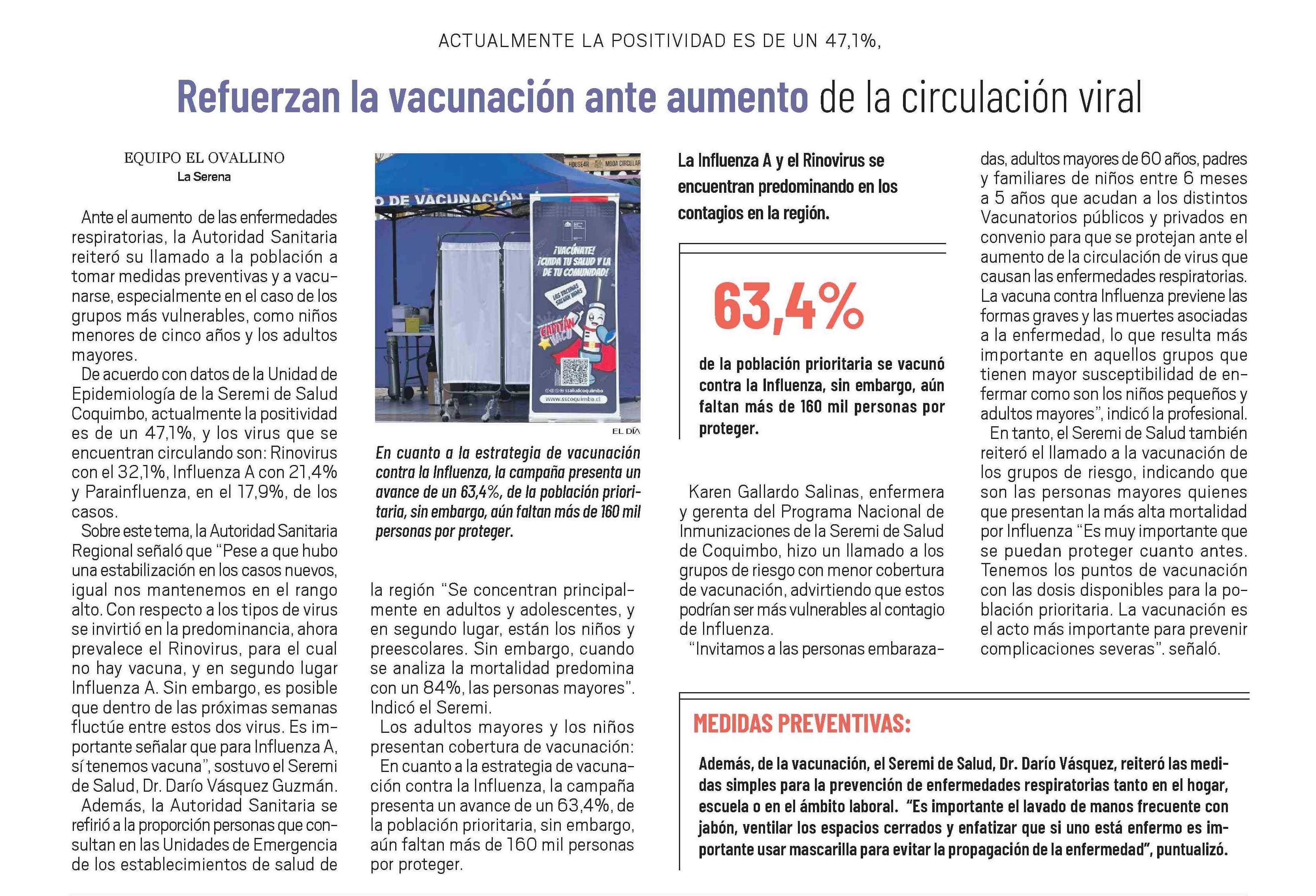 Refuerzan la vacunación ante aumento de la circulación viral 22-05-2025 El Ovallino |