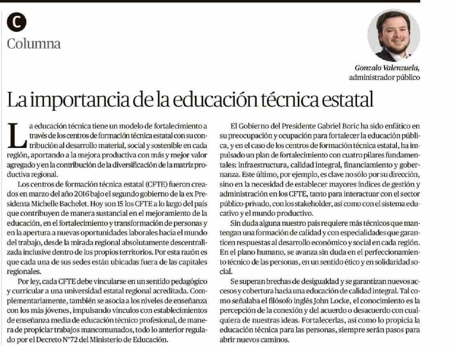 | Título: | COLUMNAS DE OPINIÓN: La importancia de la educación técnica estatal |