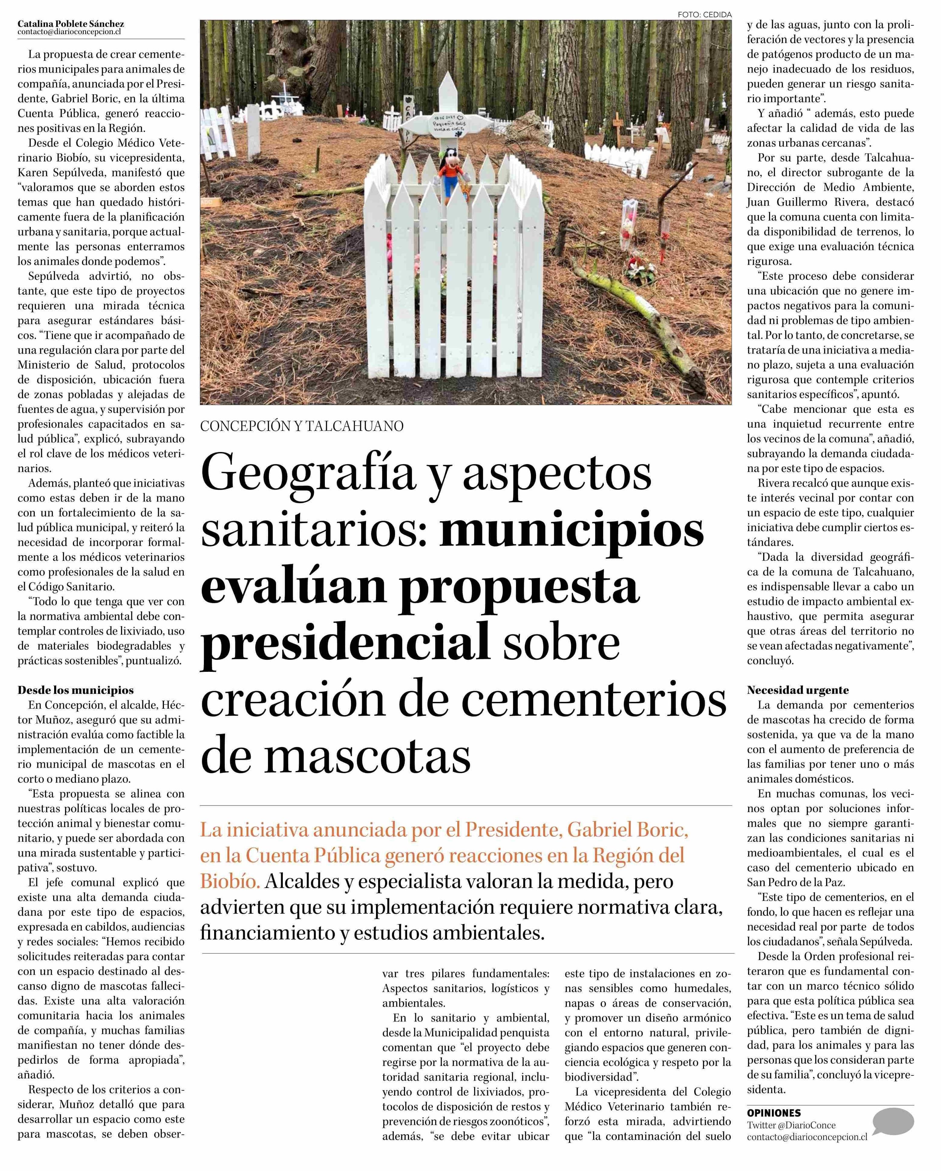 Geografía y aspectos sanitarios: municipios evalúan propuesta presidencial sobre creación de cementerios de mascotas 08-06-2025 Diario Concepción |