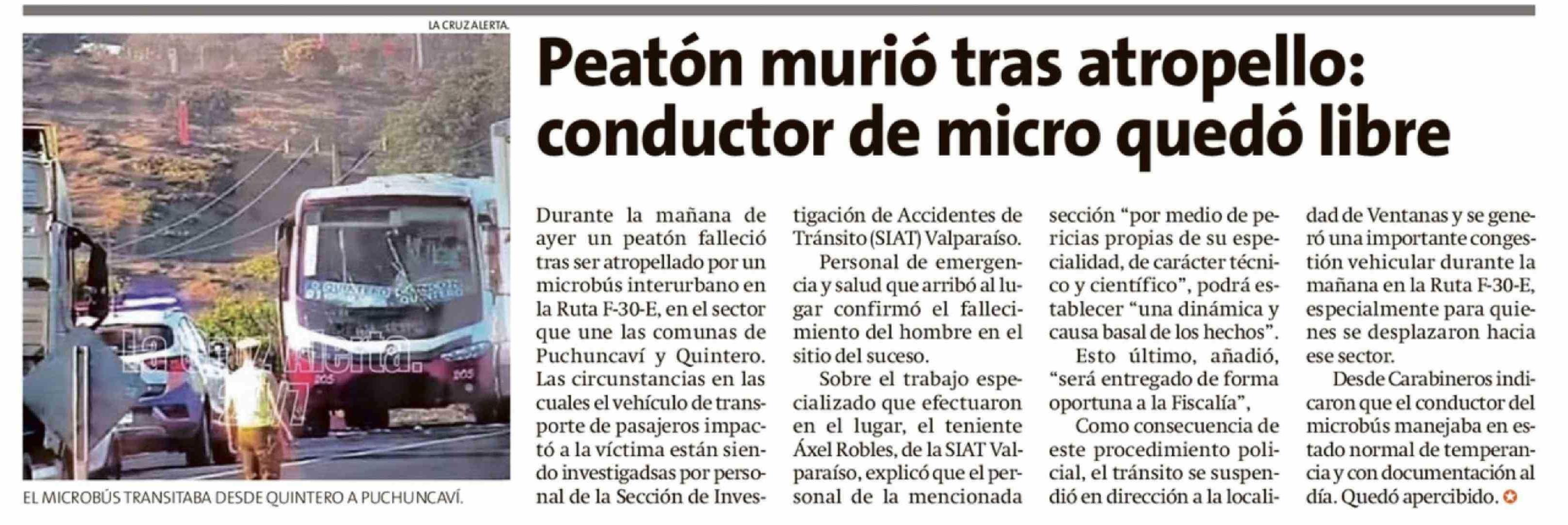 Peatón murió tras atropello: conductor de micro quedó libre 27-02-2026 La Estrella de Valparaíso |