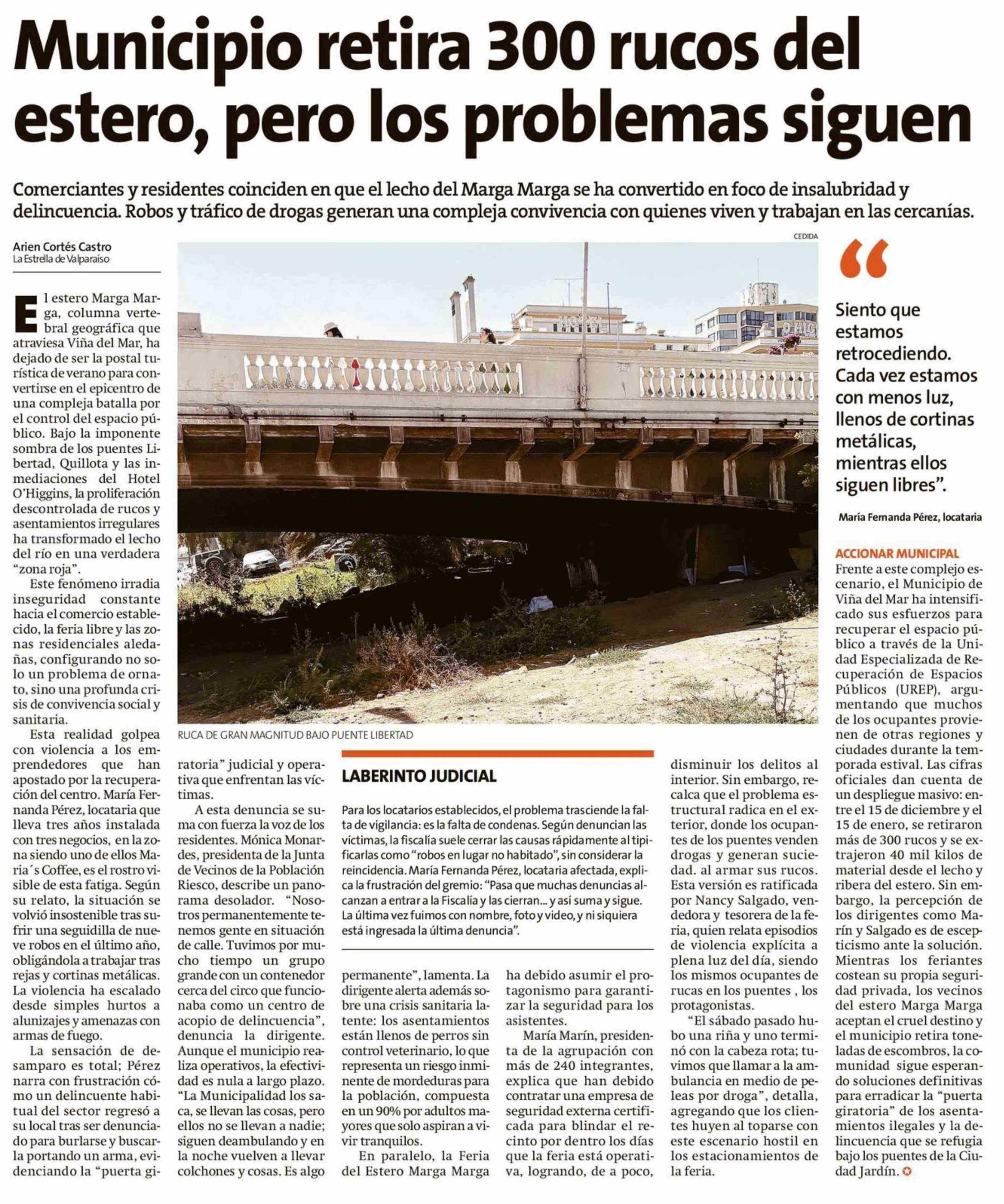 Municipio retira 300 rucos del estero, pero los problemas siguen 20-01-2026 La Estrella de Valparaíso |