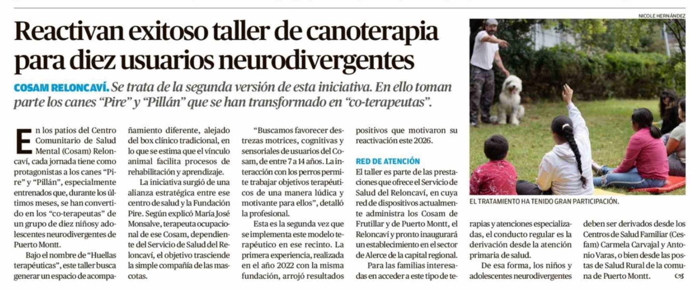 Reactivan exitoso taller de canoterapia para diez usuarios neurodivergentes 16-03-2026 El Llanquihue |