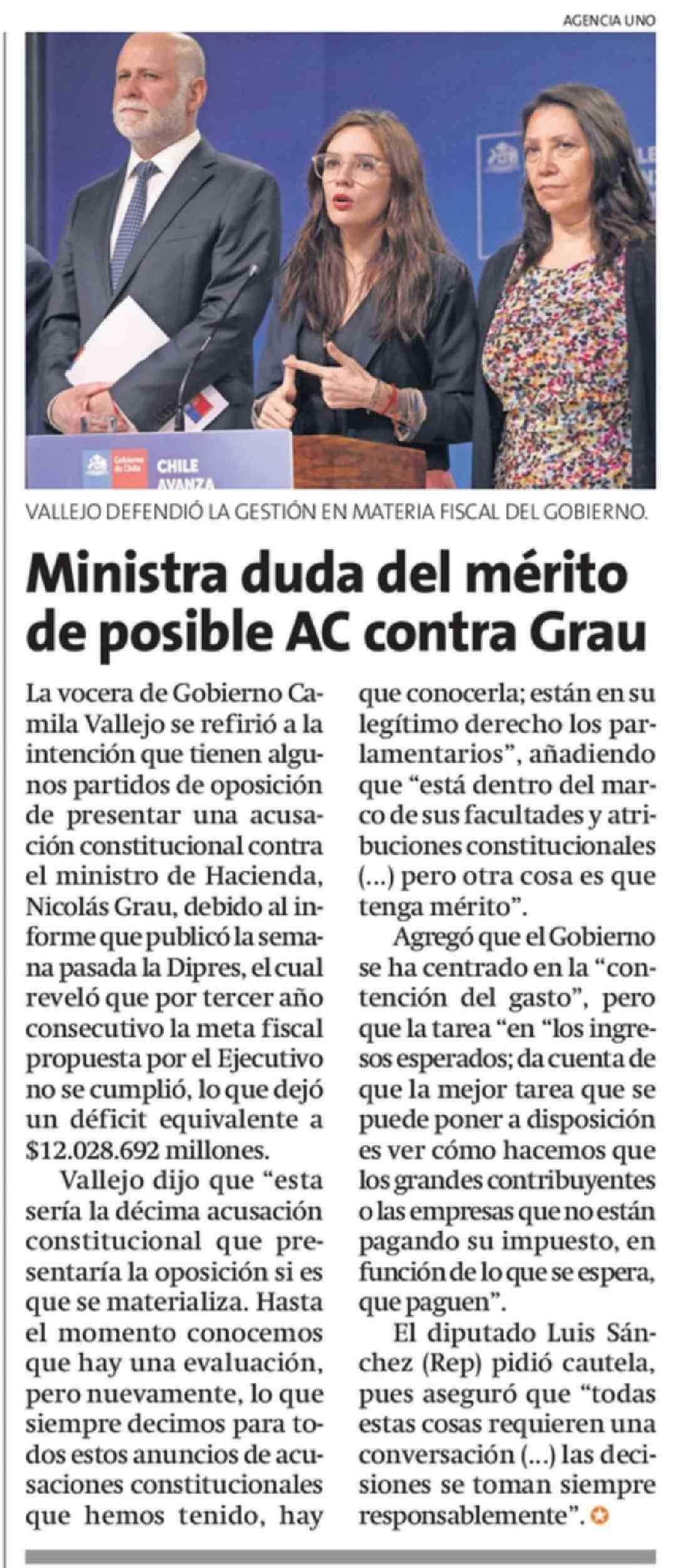 Ministra duda del mérito de posible AC contra Grau 19-02-2026 La Estrella de Concepción |