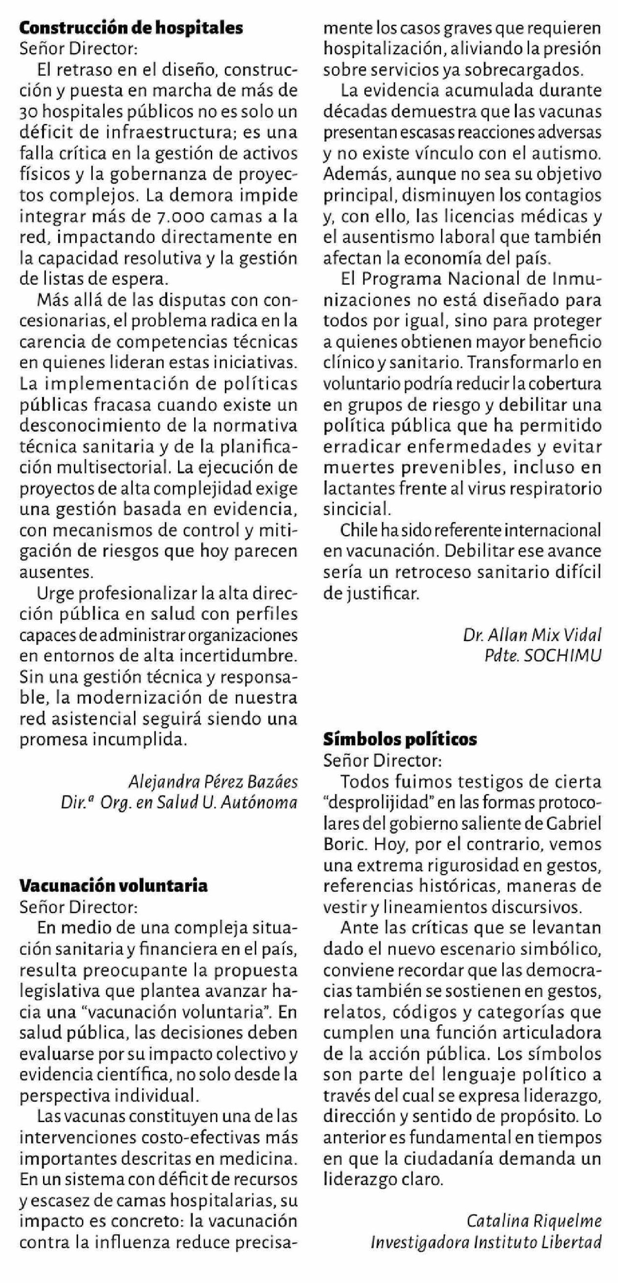 Cartas: Vacunación voluntaria 25-03-2026 La Discusión |