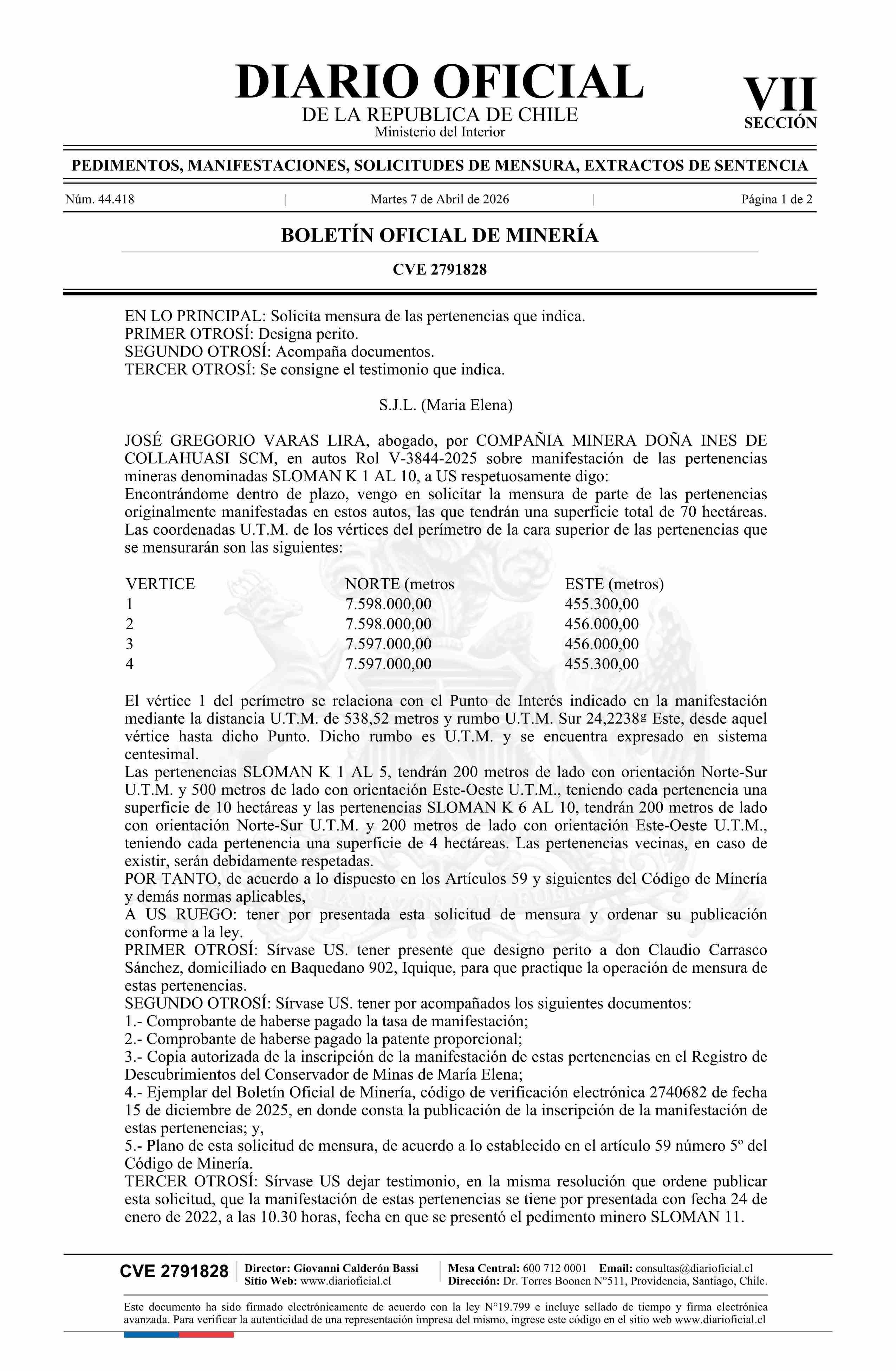 07-04-2026 DIARIO OFICIAL CHILE - BOLETÍN OFICIAL DE MINERÍA
