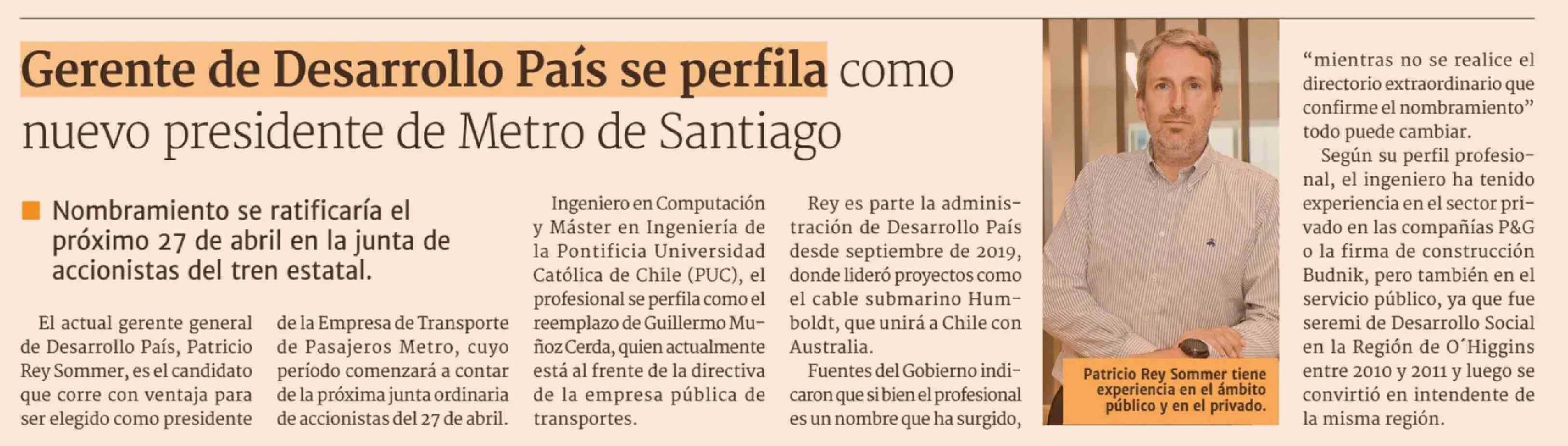 Título: Gerente de Desarrollo País se perfila como nuevo presidente de Metro de Santiago