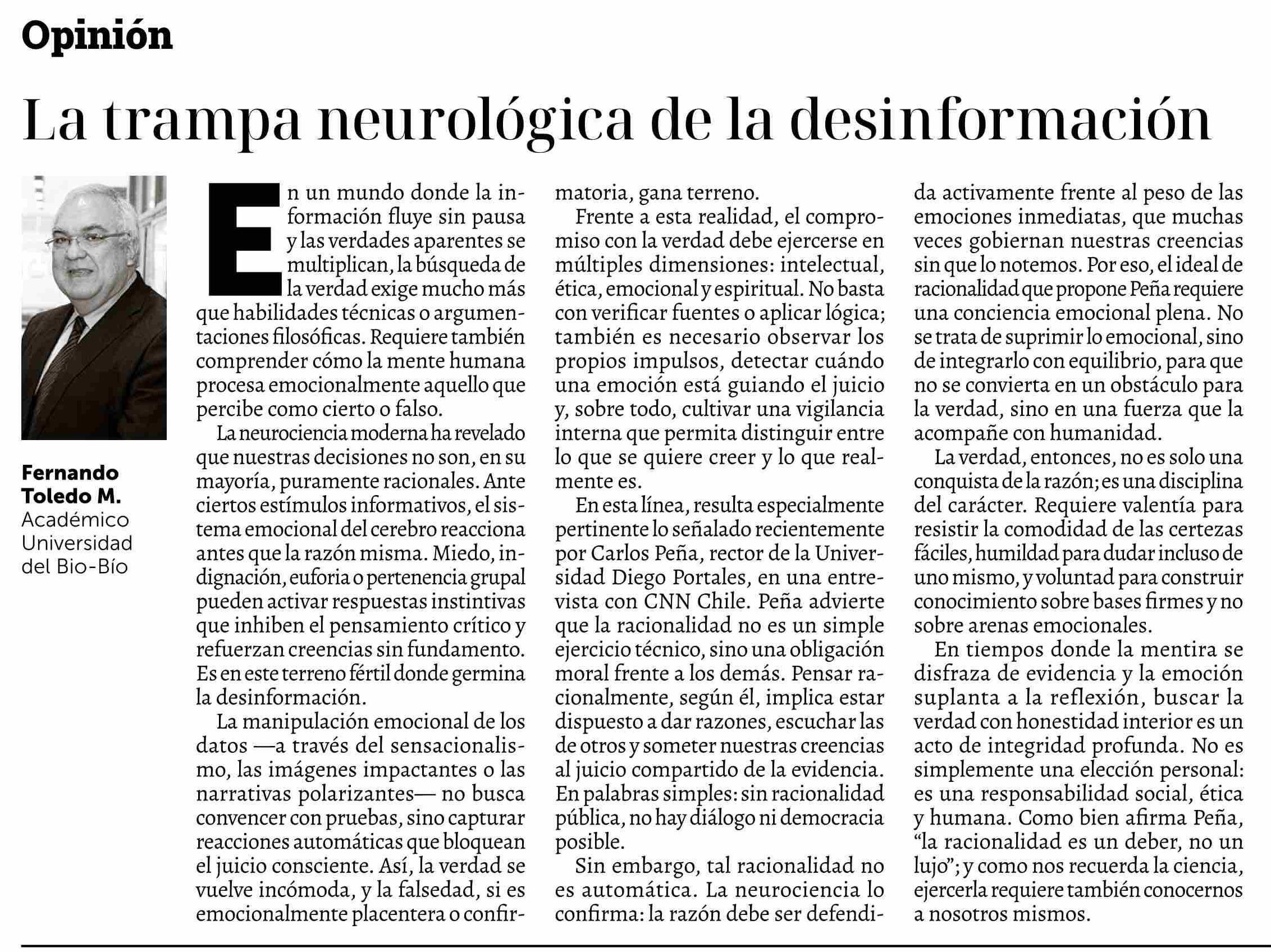 | Título: | Columnas de Opinión: La trampa neurológica de la desinformación |