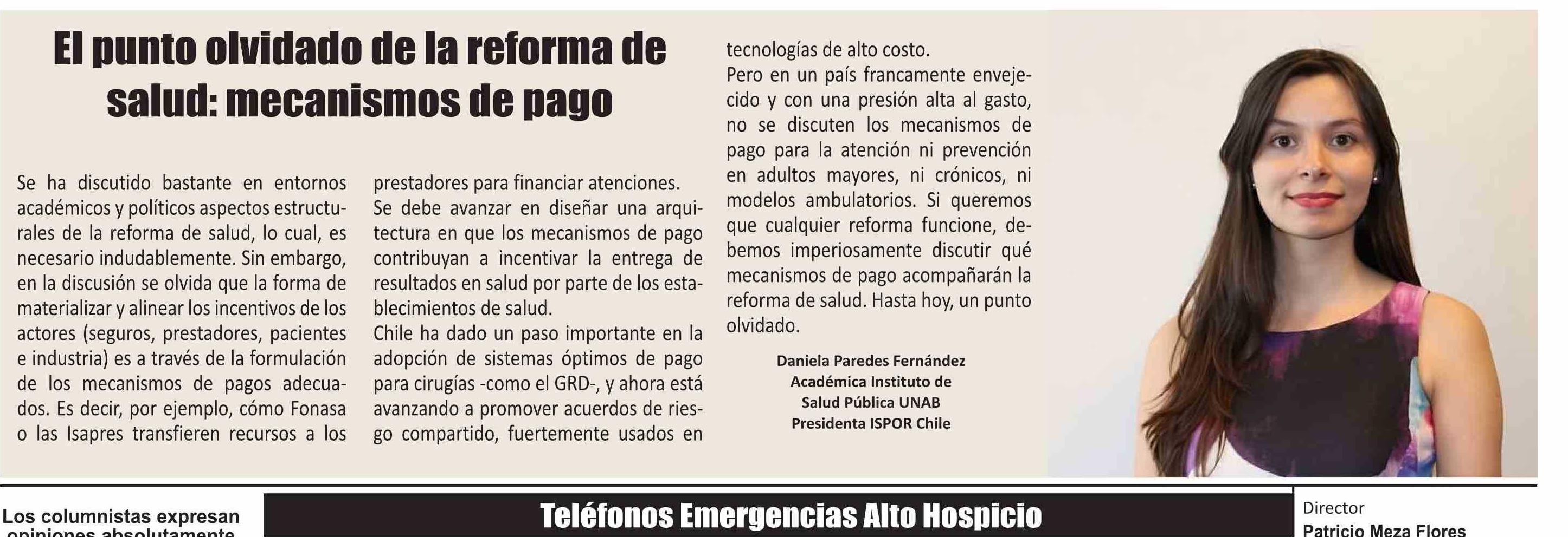 Título: Columnas de Opinión: El punto olvidado de la reforma de salud: mecanismos de pago