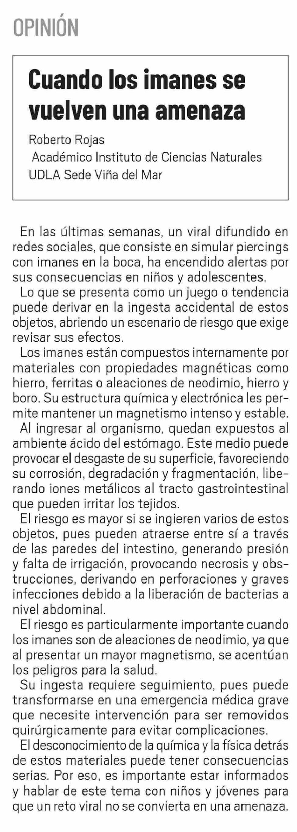 Columnas de Opinión: Cuando los imanes se vuelven una amenaza 21-04-2026 El Día |