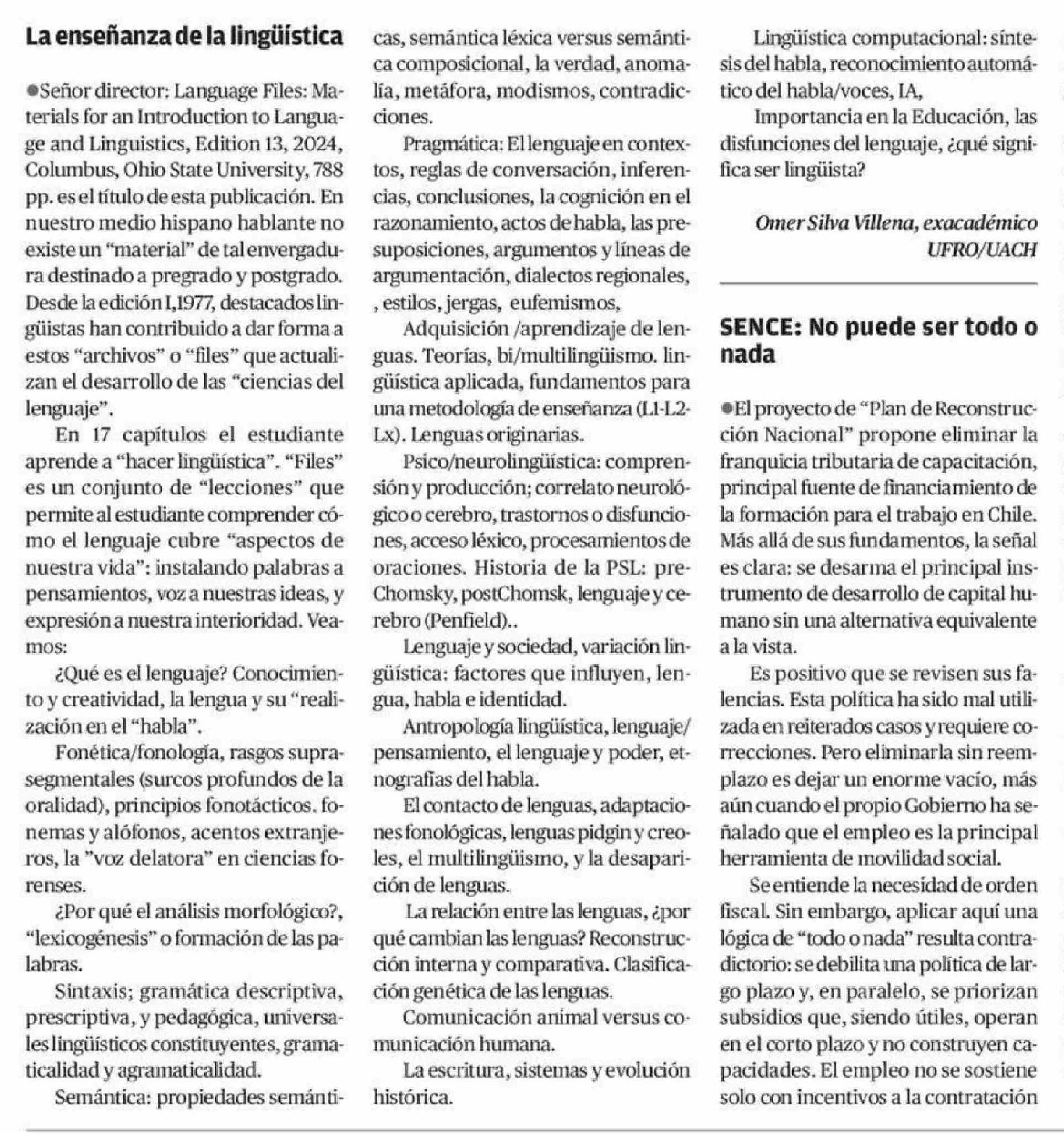 Cartas: La enseñanza de la lingüística 28-04-2026 El Diario de Atacama |