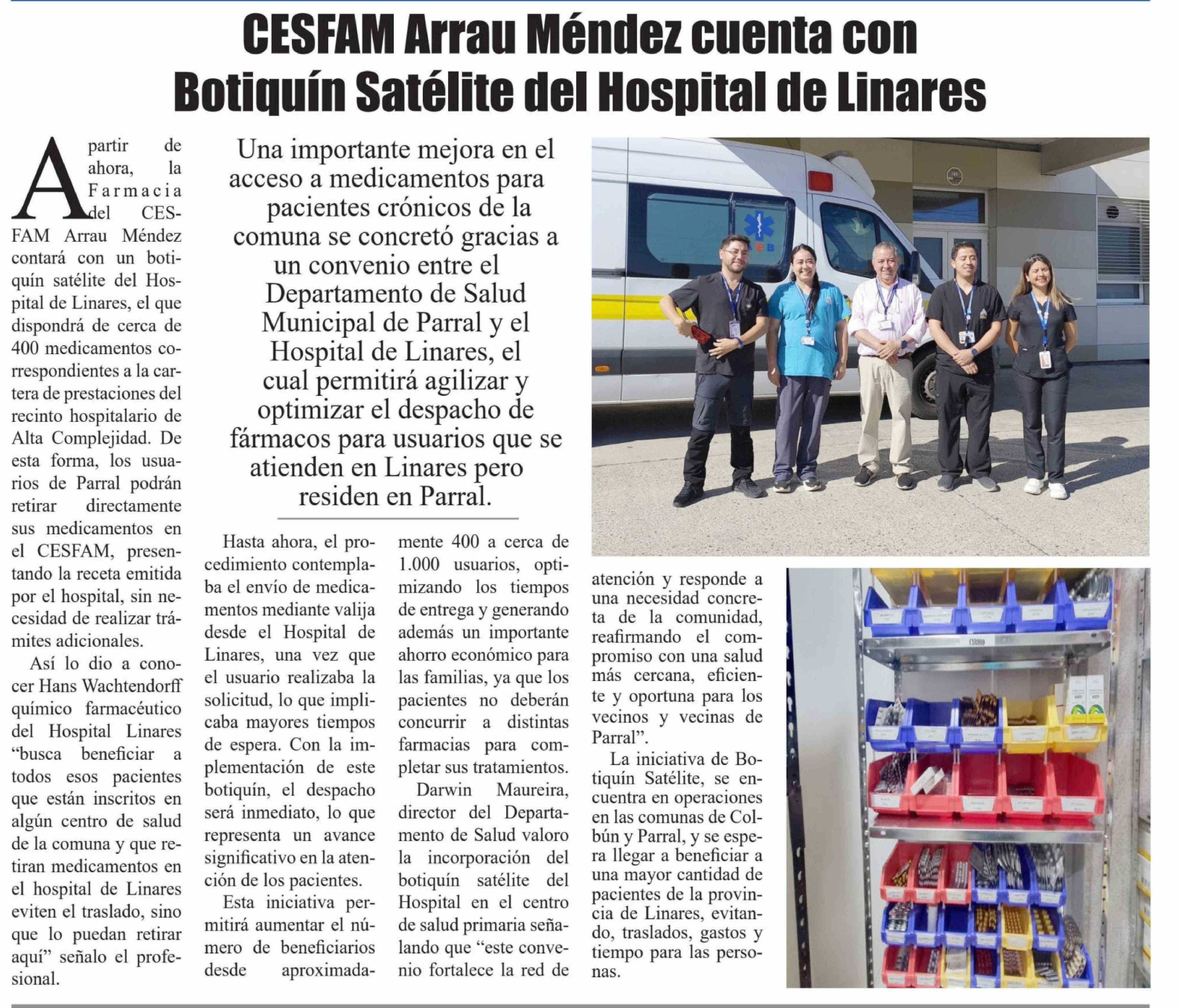 CESFAM Arrau Méndez cuenta con Botiquín Satélite del Hospital de Linares 04-02-2026 El Heraldo |