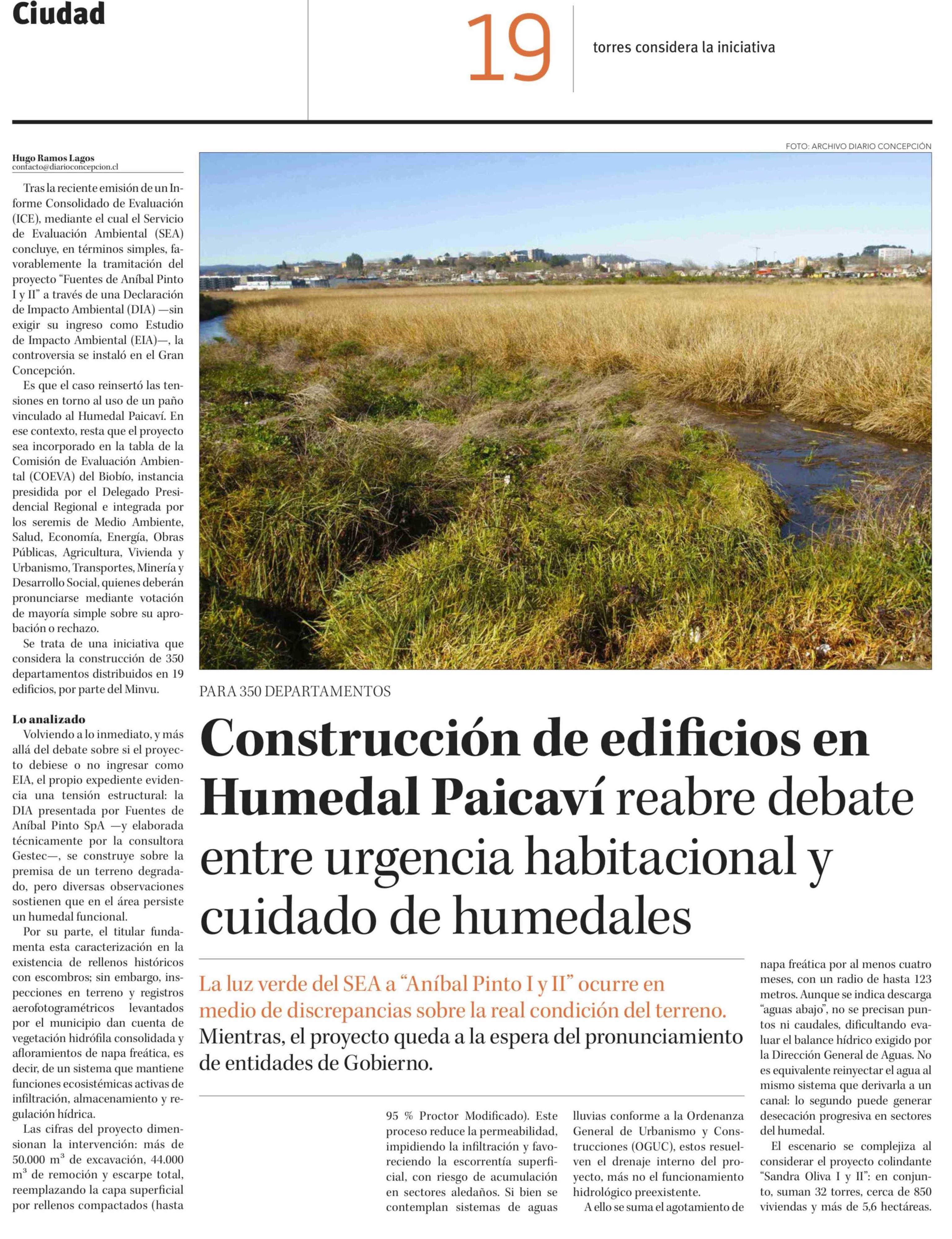 Título: Construcción de edificios en Humedal Paicaví reabre debate entre urgencia habitacional y cuidado de humedales