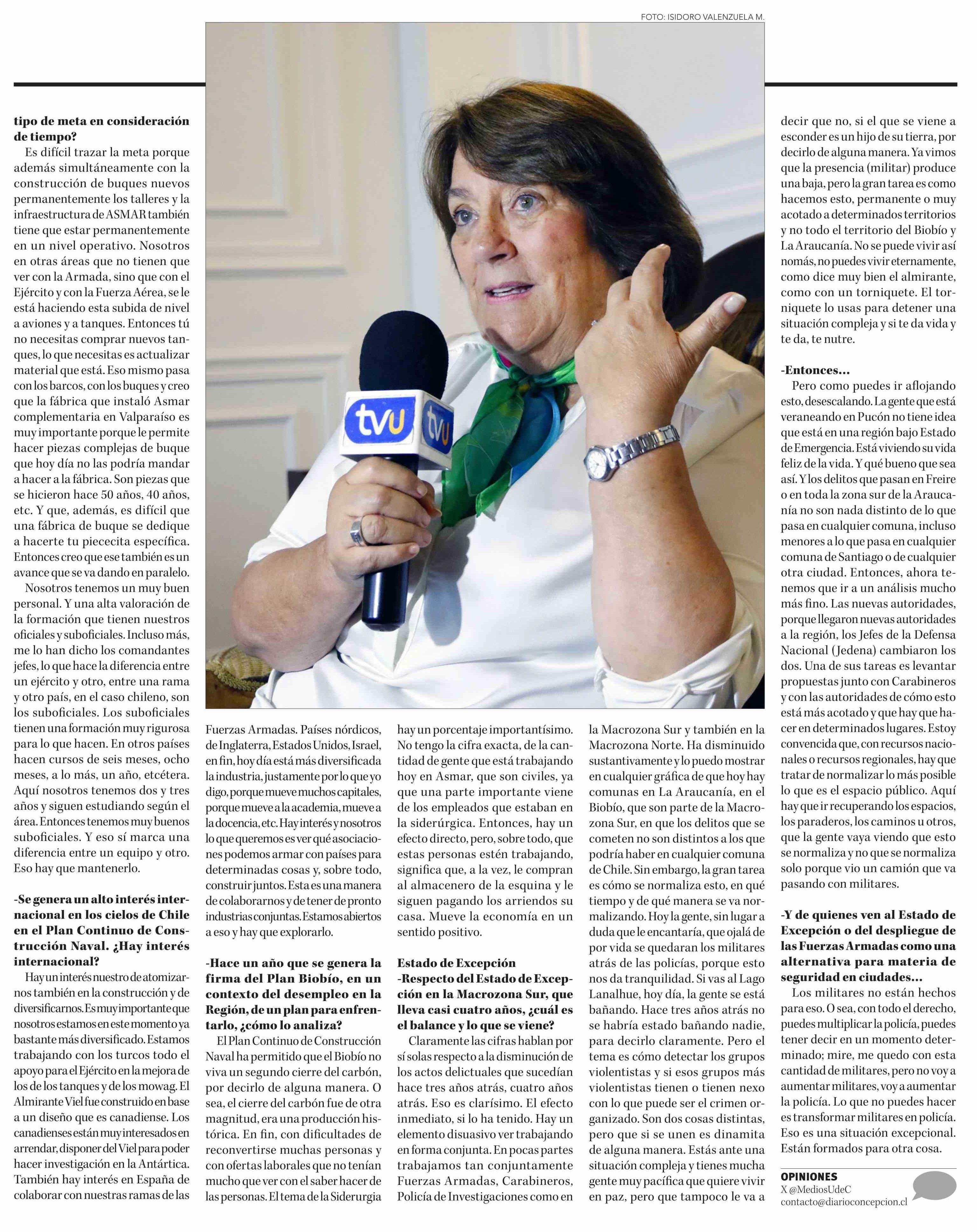 "El Plan Continuo de Construcción Naval ha permitido que el Biobío no viva un segundo cierre del carbón": Ministra de Defensa, Adriana Delpiano 18-01-2026 Diario Concepción |
