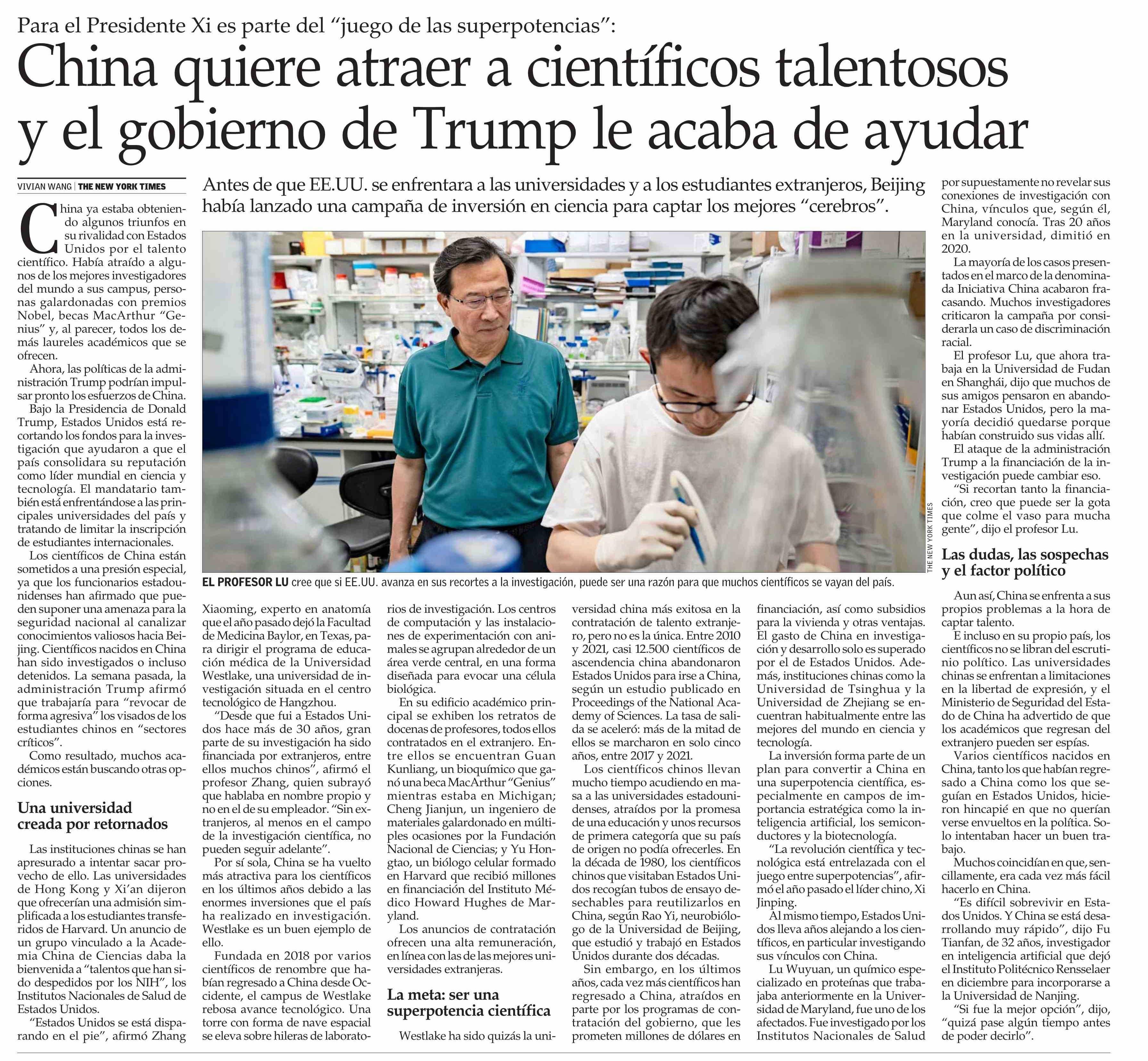 | Título: | China quiere atraer a científicos talentosos y el gobierno de Trump le acaba de ayudar |