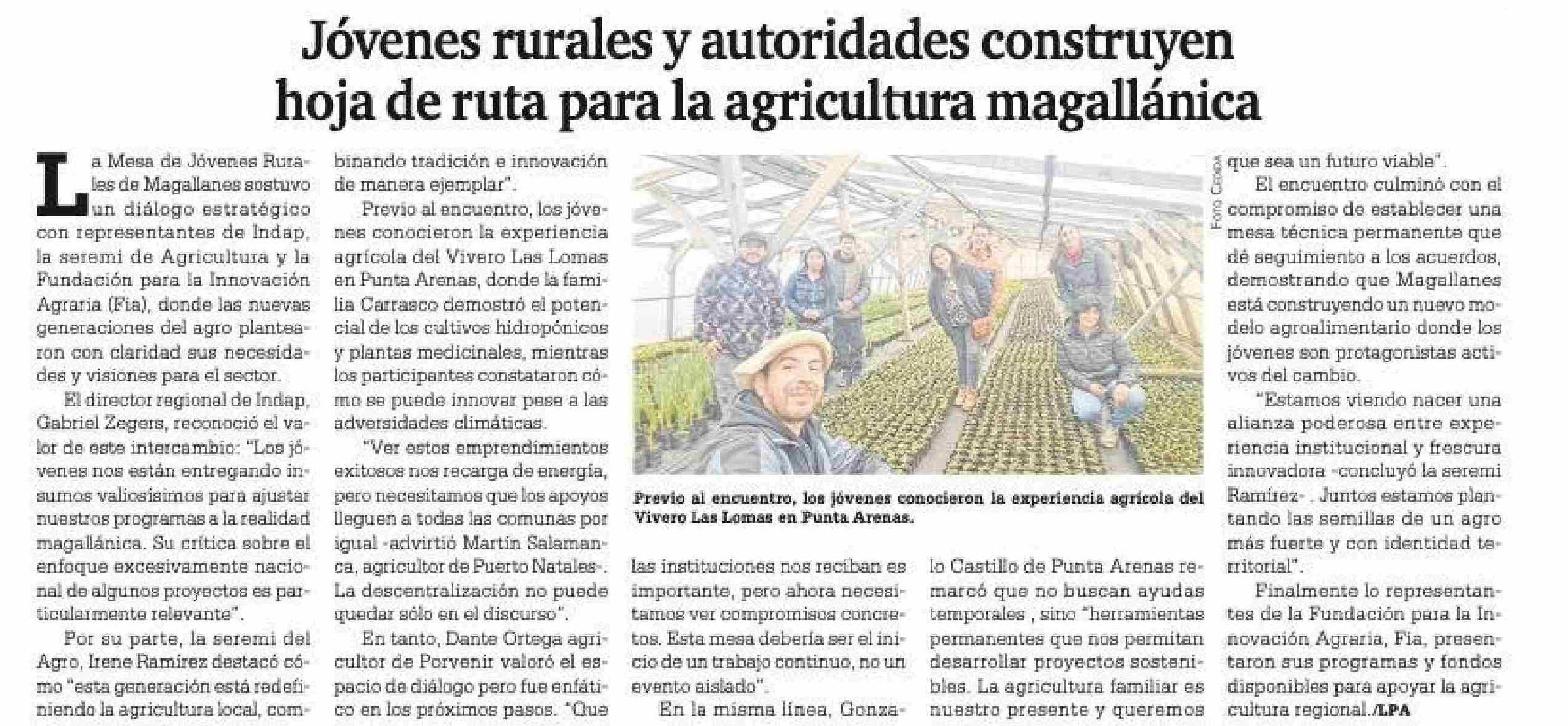 Jóvenes rurales y autoridades construyen hoja de ruta para la agricultura magallánica 08-05-2025 La Prensa Austral |