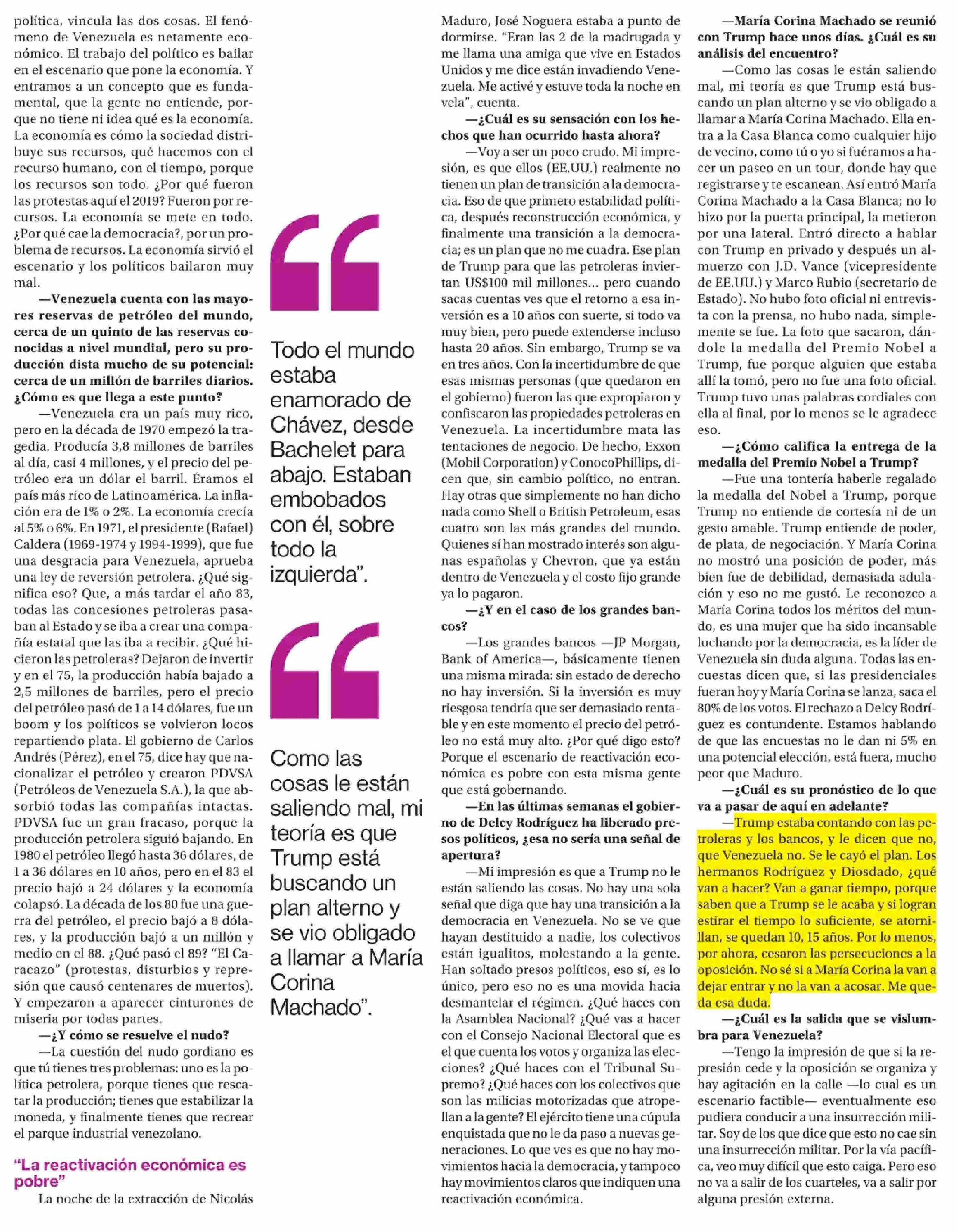 "No hay una sola señal que diga que hay una transición a la democracia en Venezuela" 27-01-2026 La Segunda |