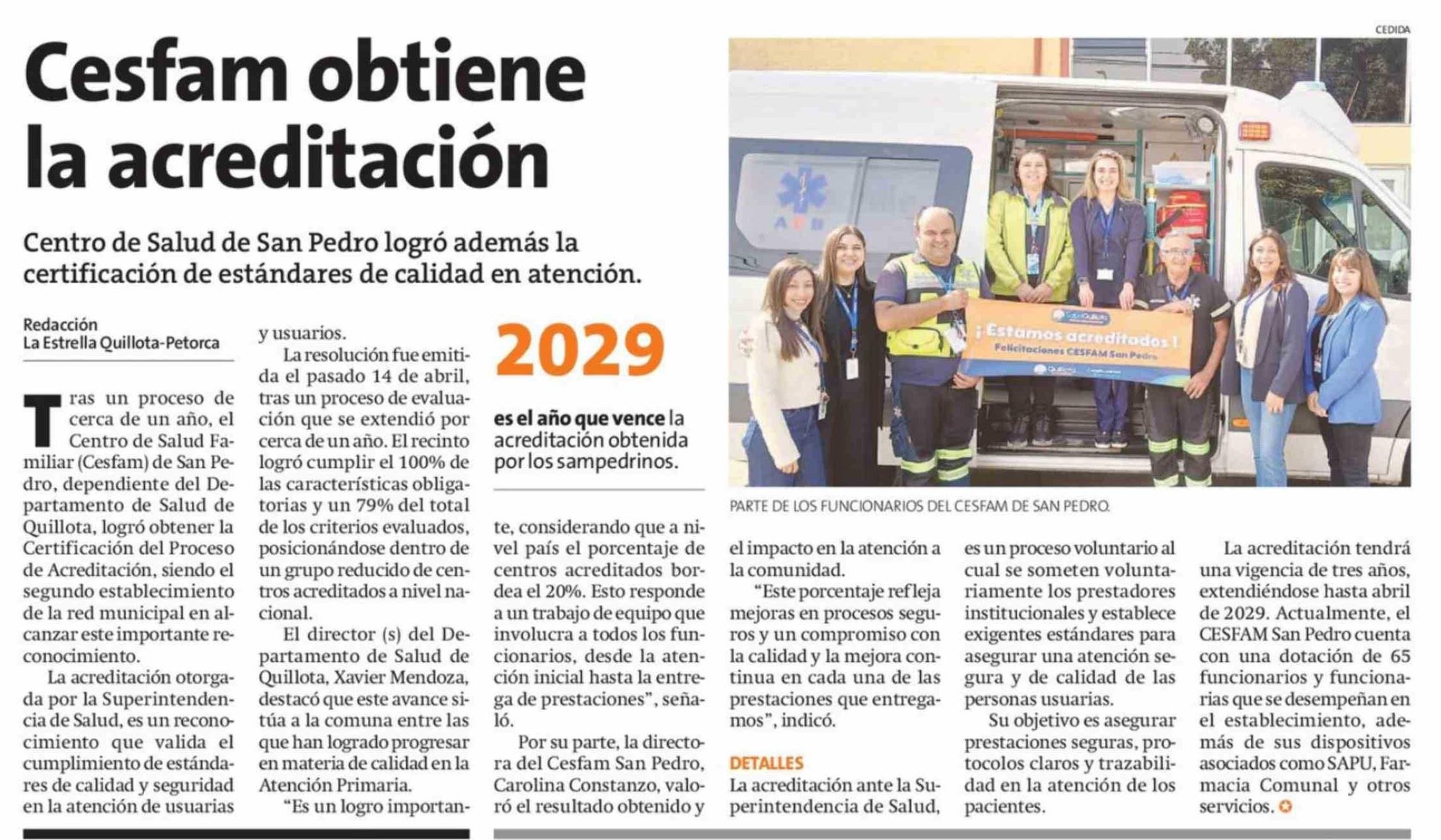 Cesfam obtiene la acreditación 24-04-2026 La Estrella de Quillota |