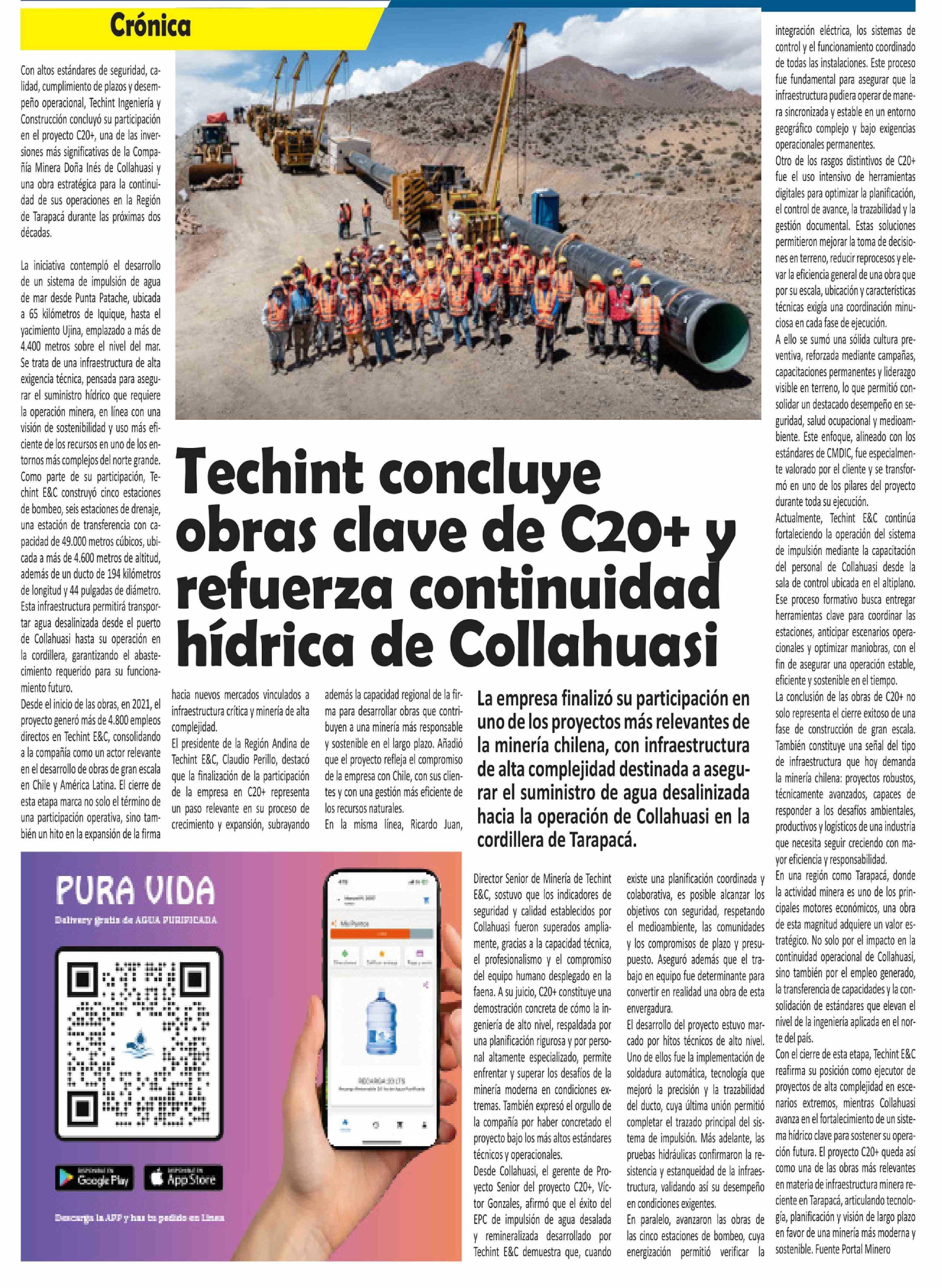 Título: Techint concluye obras clave de C20+ refuerza continuidad hídrica de Collahuasi