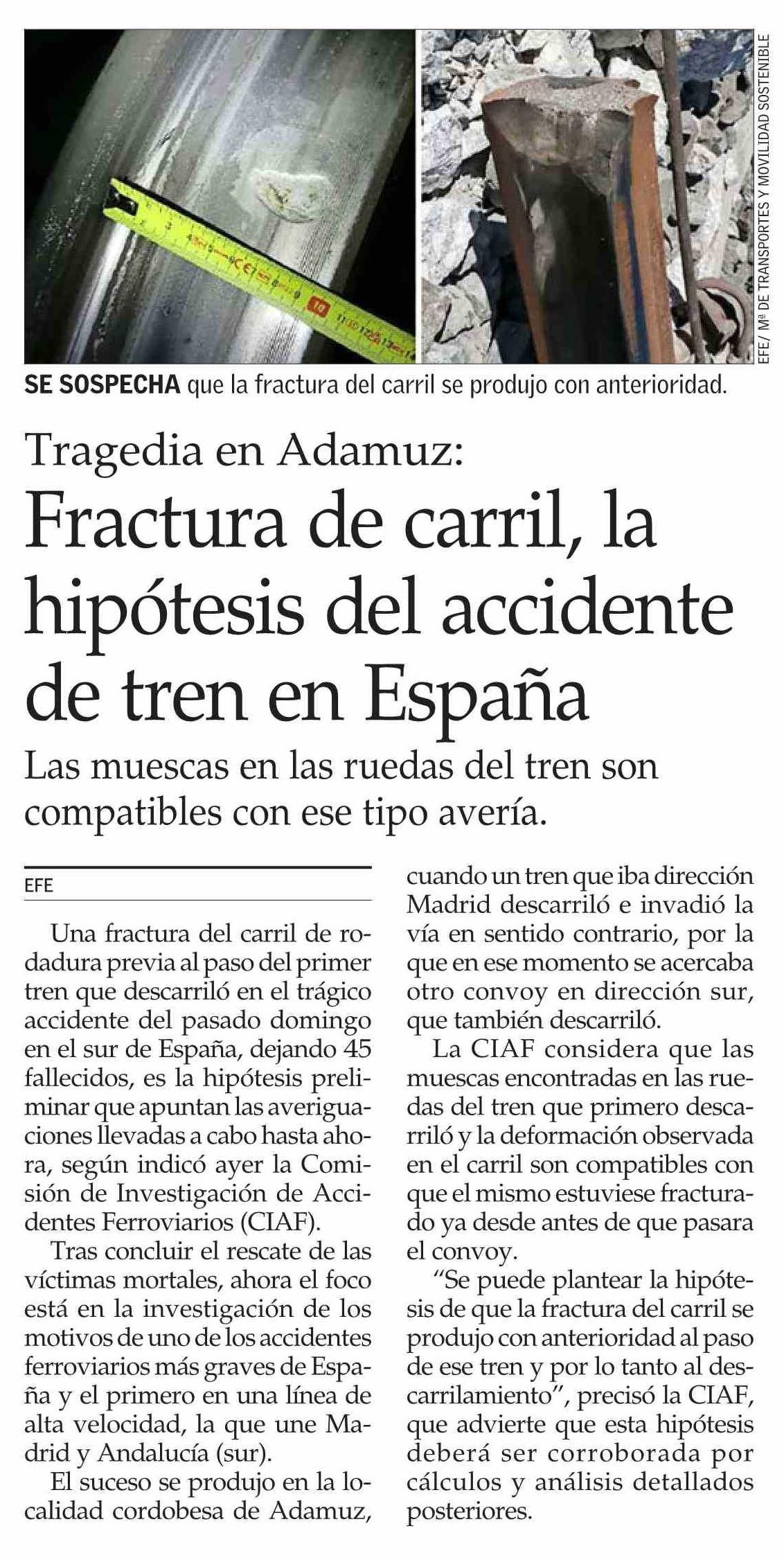 Título: Fractura de carril, la hipótesis del accidente de tren en España