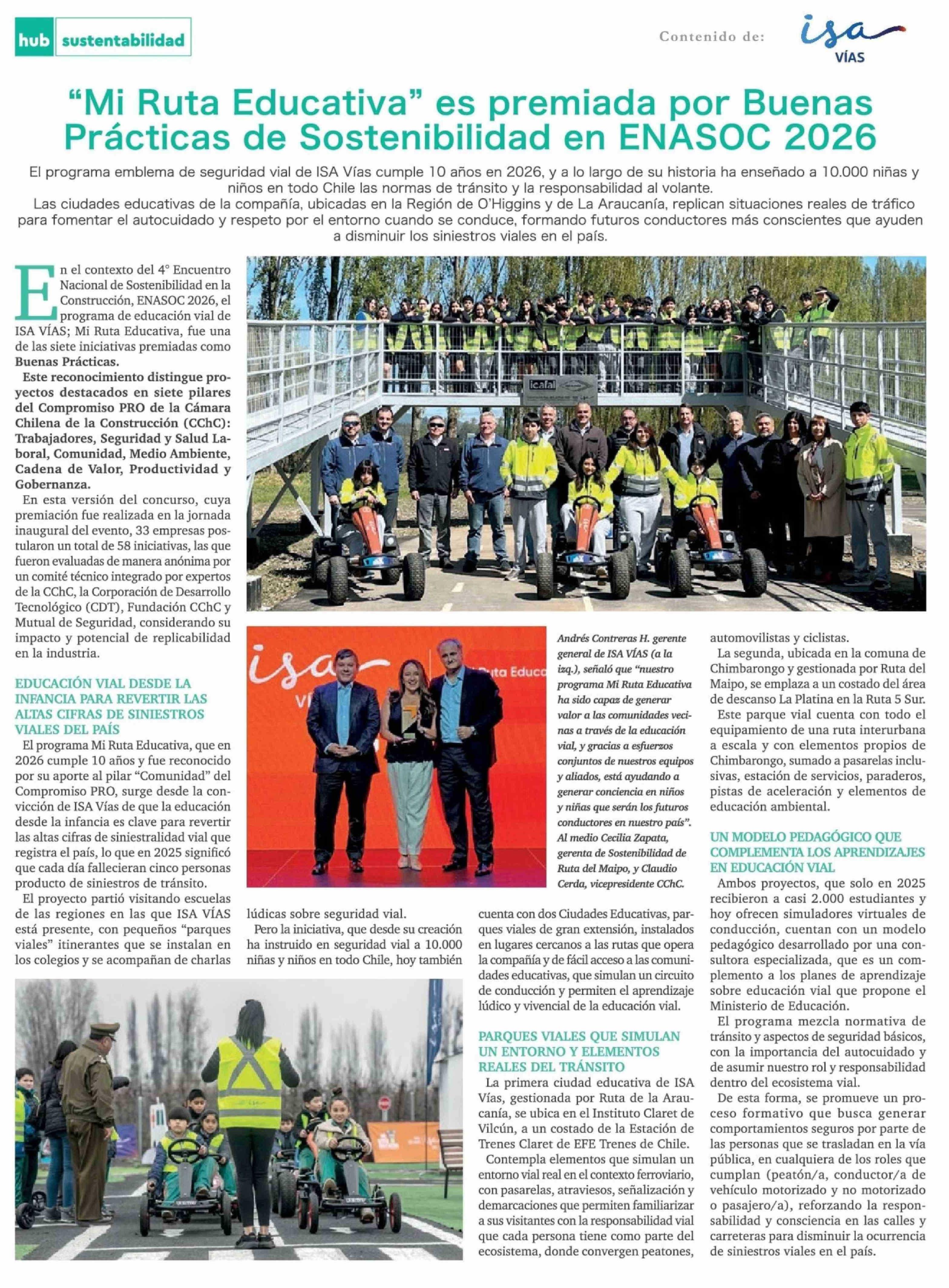 Título: "Mi Ruta Educativa" es premiada por Buenas Prácticas de Sostenibilidad en ENASOC 2026