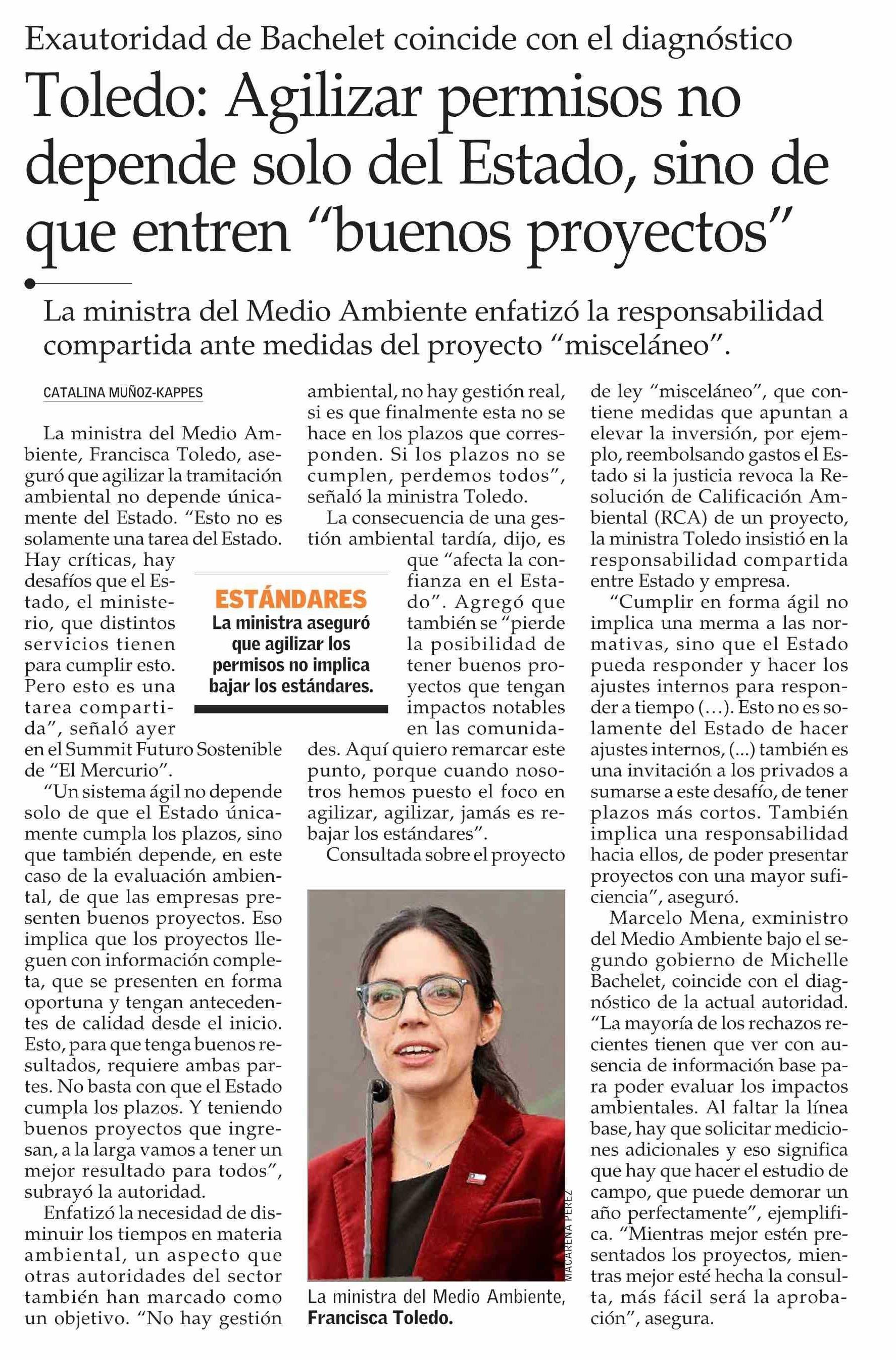 Título: Toledo: Agilizar permisos no depende solo del Estado, sino de que entren “buenos proyectos”