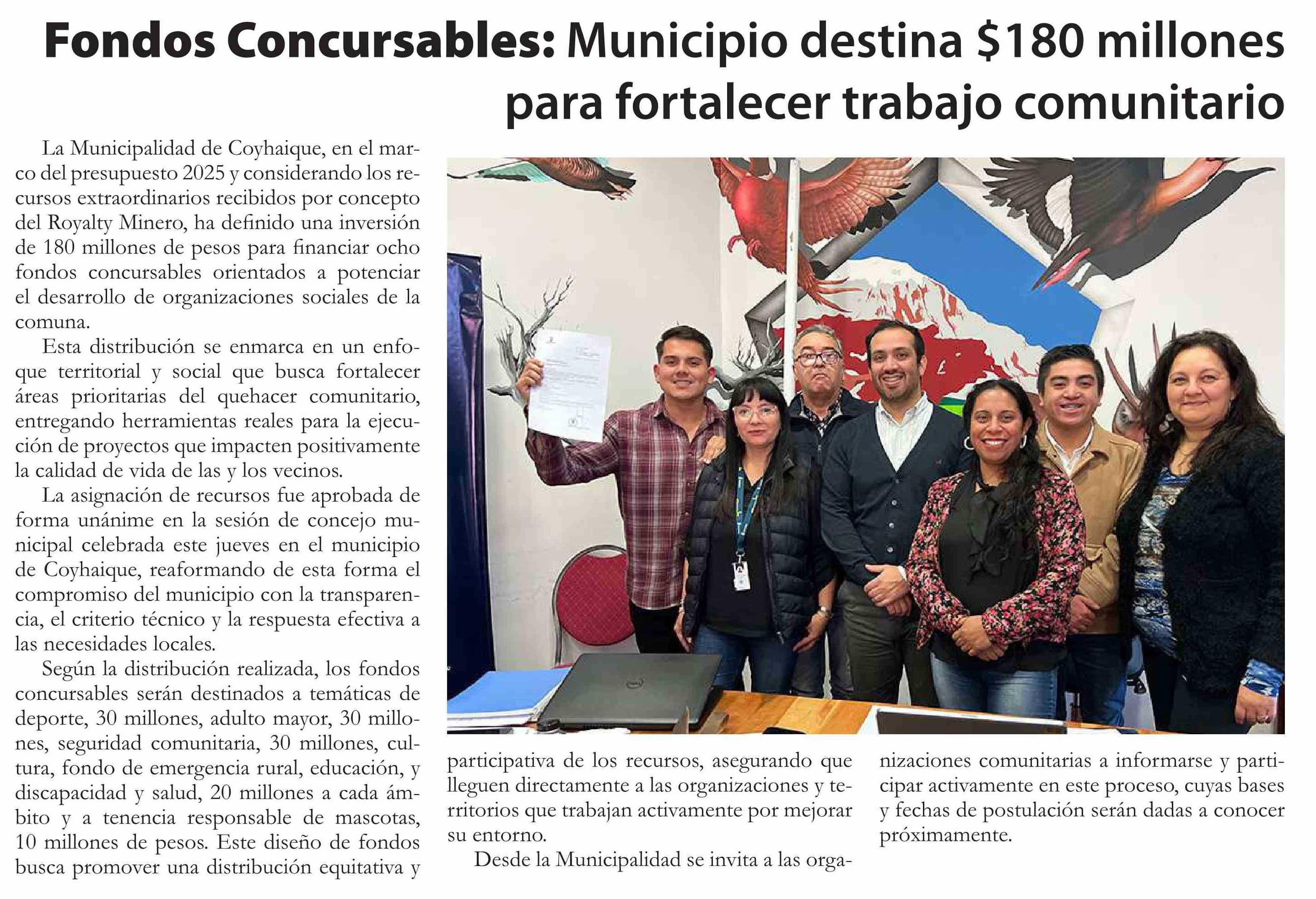 | Título: | Fondos Concursables: Municipio destina $180 millones para fortalecer trabajo comunitario |