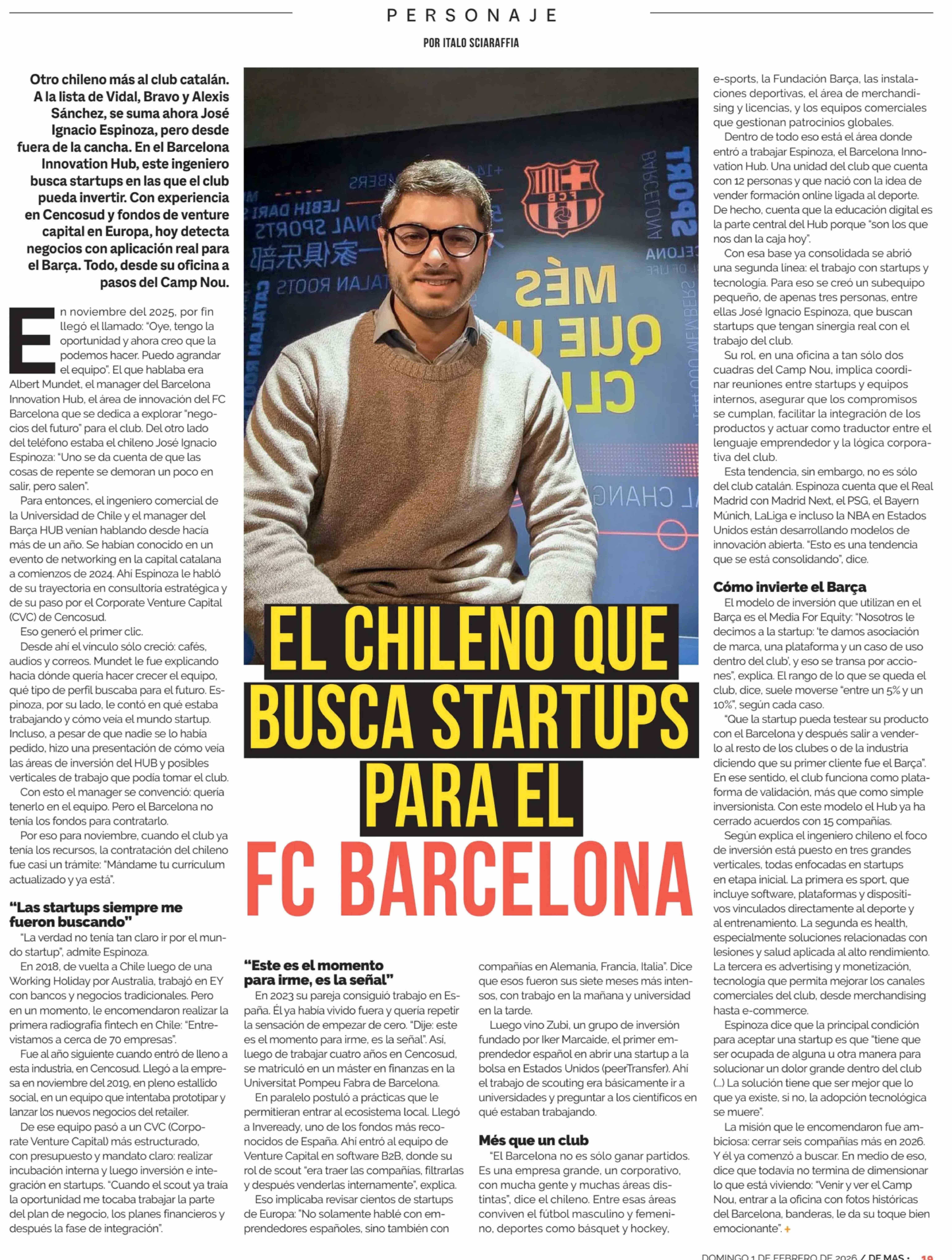 EL CHILENO QUE BUSCA STARTUPS PARA EL FC BARCELONA 01-02-2026 Diario Financiero |