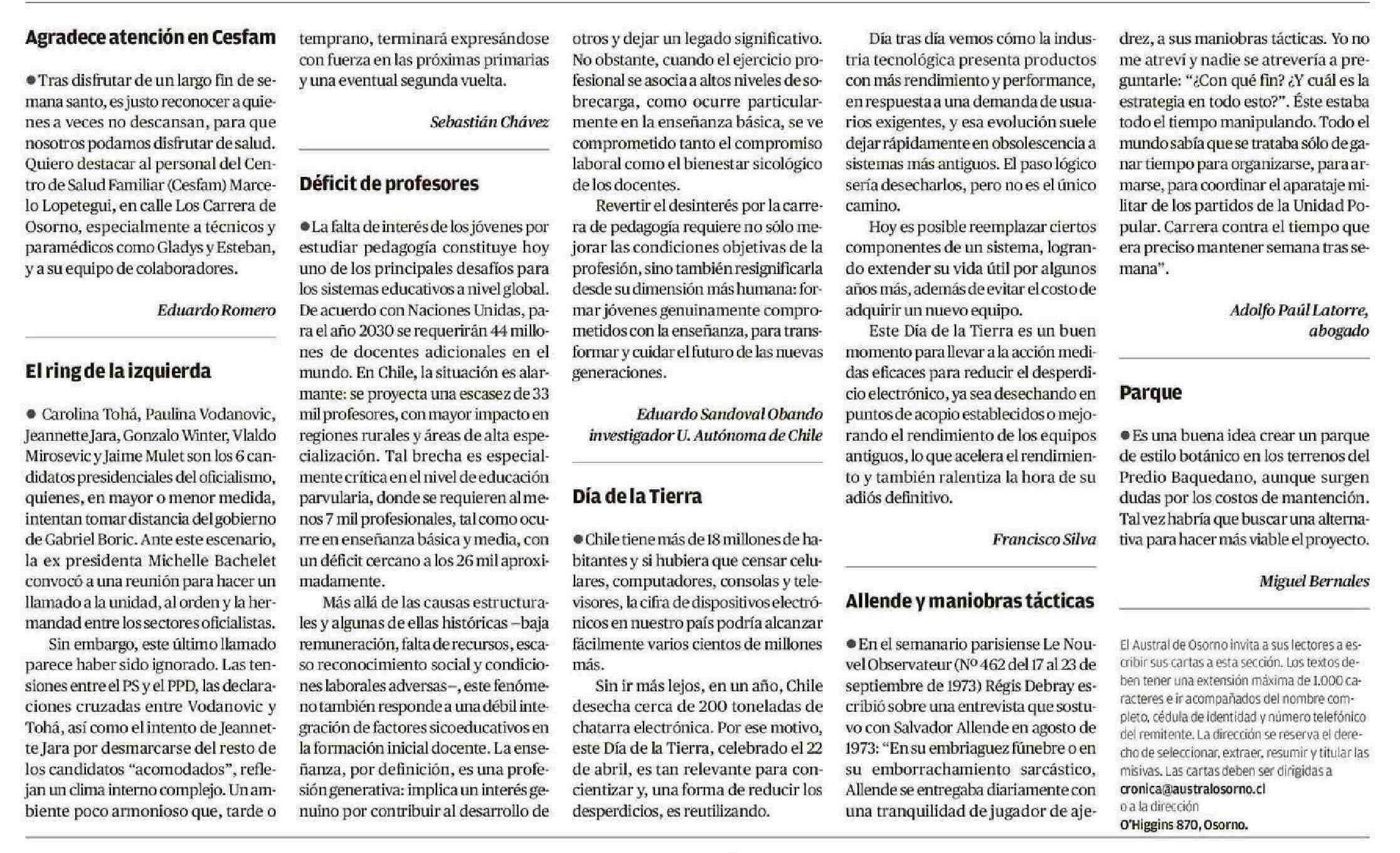 CARTAS 23-04-2025 El Austral de Osorno |